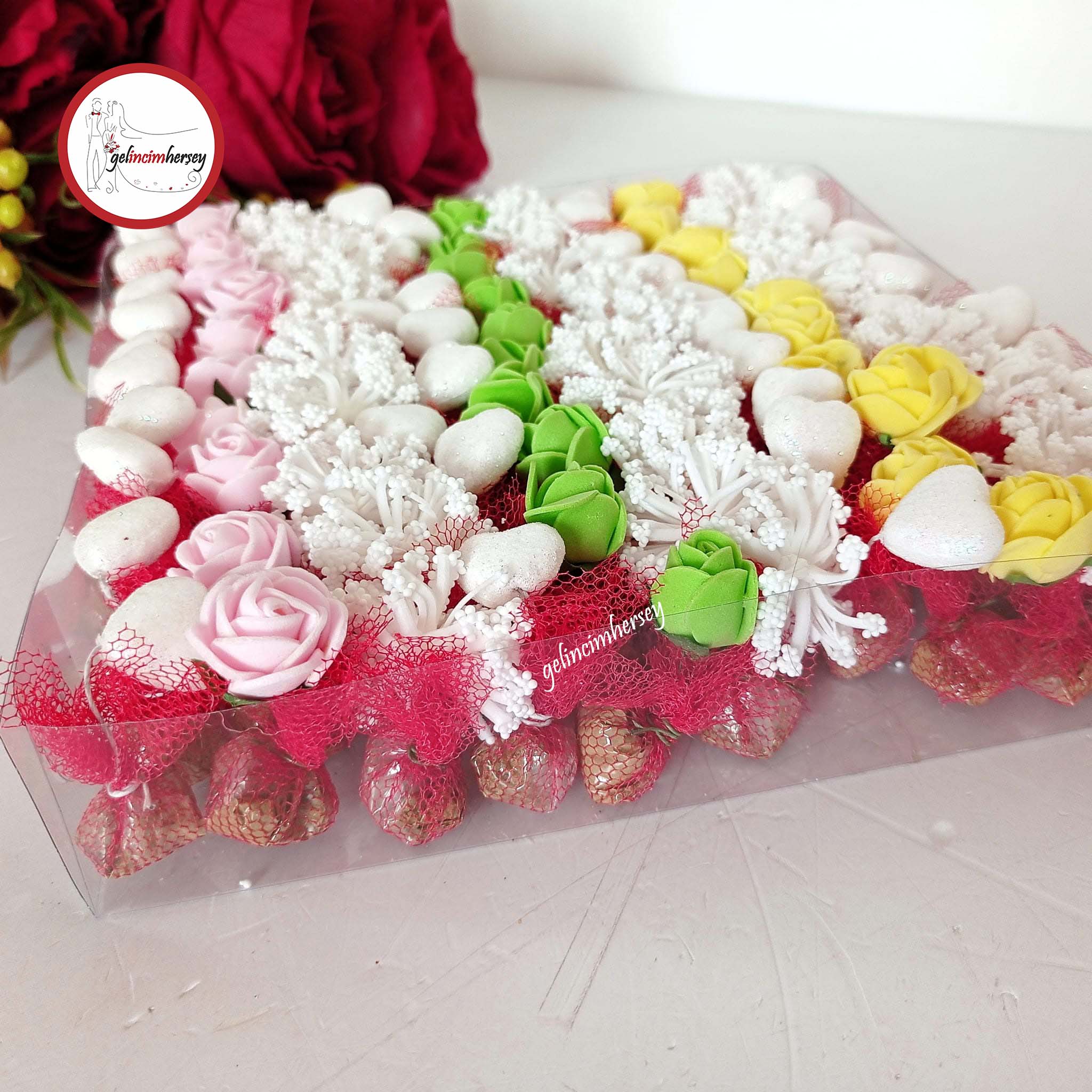 *Ürün içerisindeki gül renkleri (pıtırcık ve kalp hariç )stok durumuna göre değişkenlik gösterir.Kargo paketinizin dış kısmını kontrol edip ,hasarlı ise teslim almadan görevli yanında kontrol edilmelidir. Farklı bir durumda zabıt tutturup durumu mağazamıza durum hakkında bilgi verilmesi gerekmektedir. Aksi halde sorumluluk kabul edilmeyecektir.