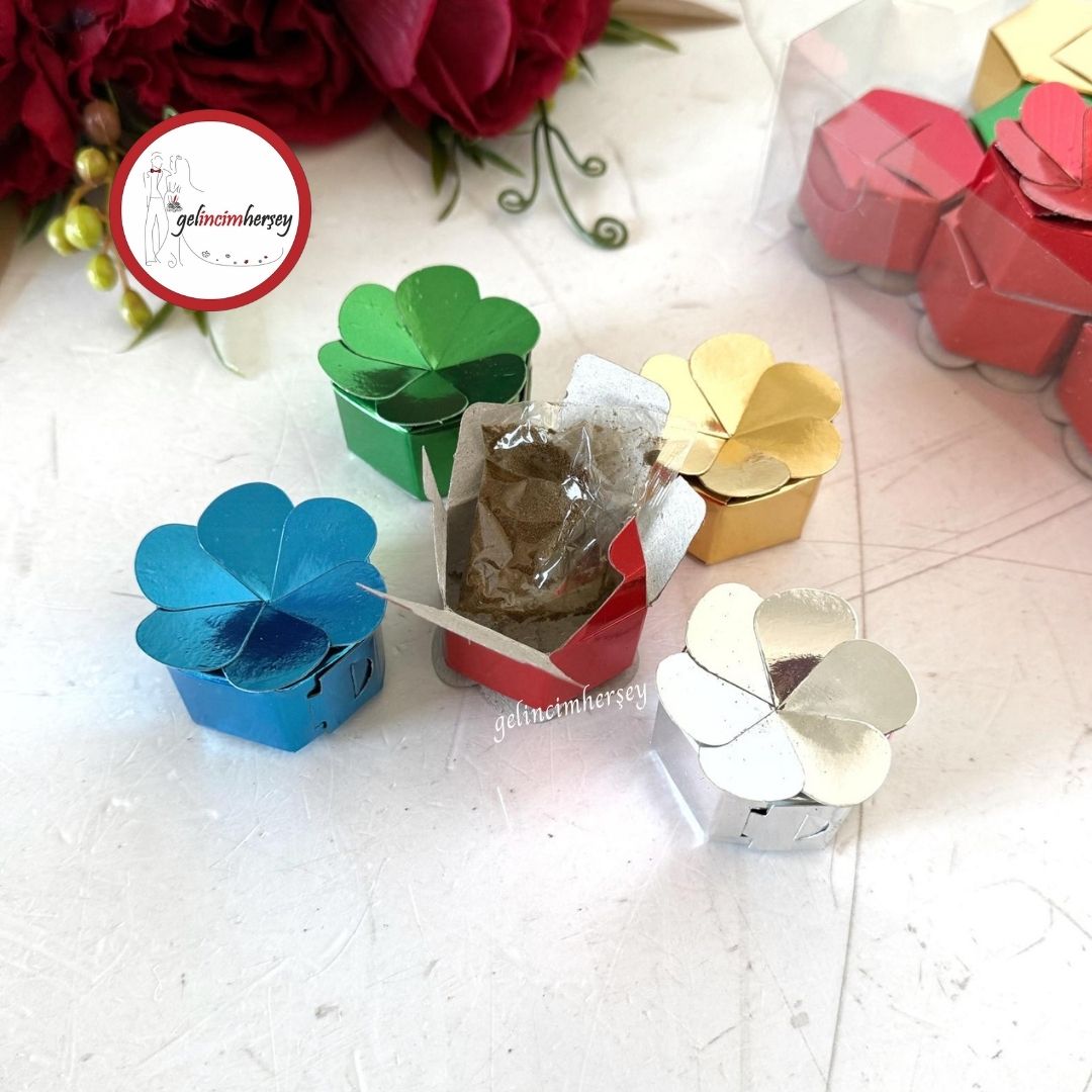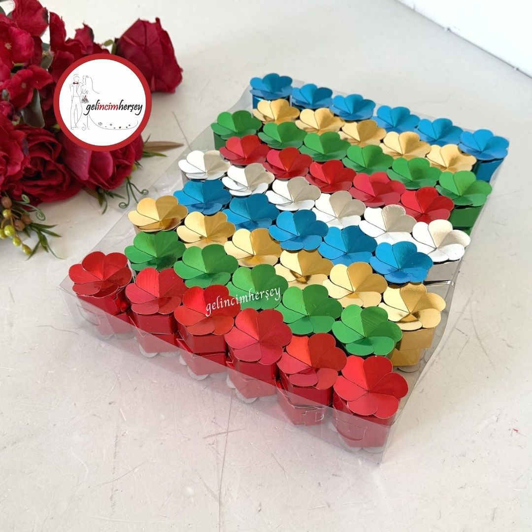 Gelincimherşey 100’lü Renkli Çiçek Şeklinde Kutulu Dağıtmalık Hediyelik Kına