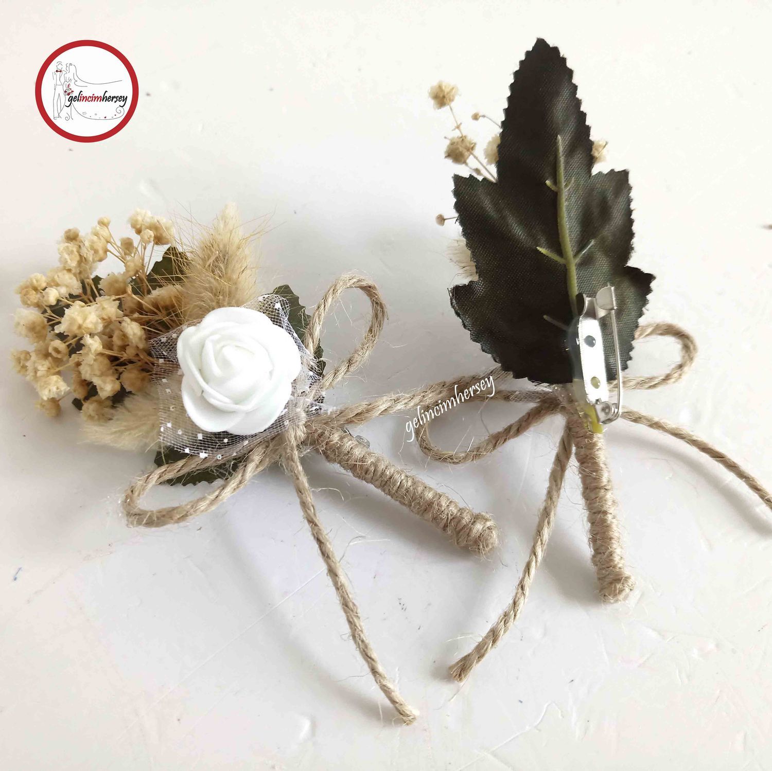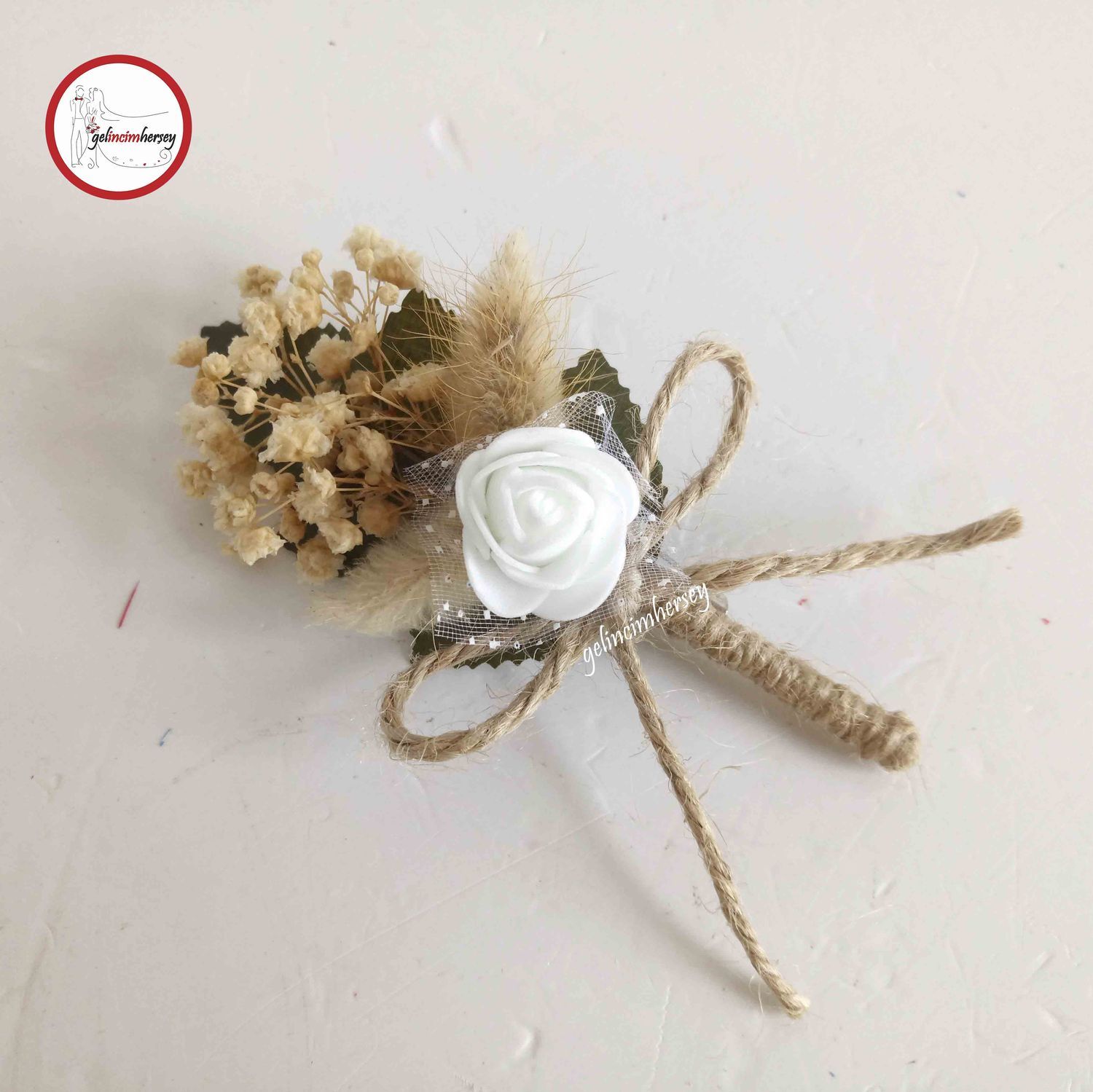 Gelincimherşey 10’lu Cipso Pamuk Ot Süslemeli Damat Arkadaş Yaka Çiçeği