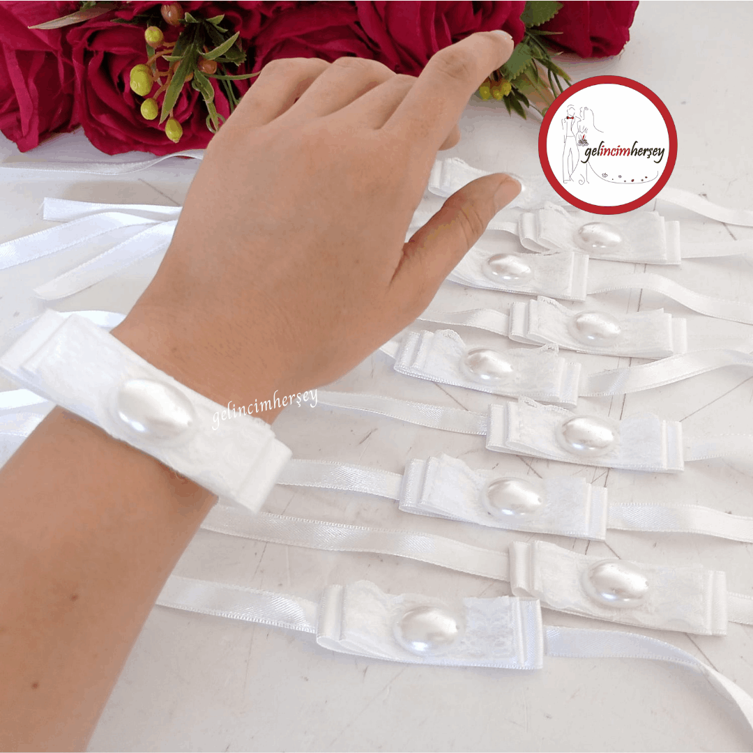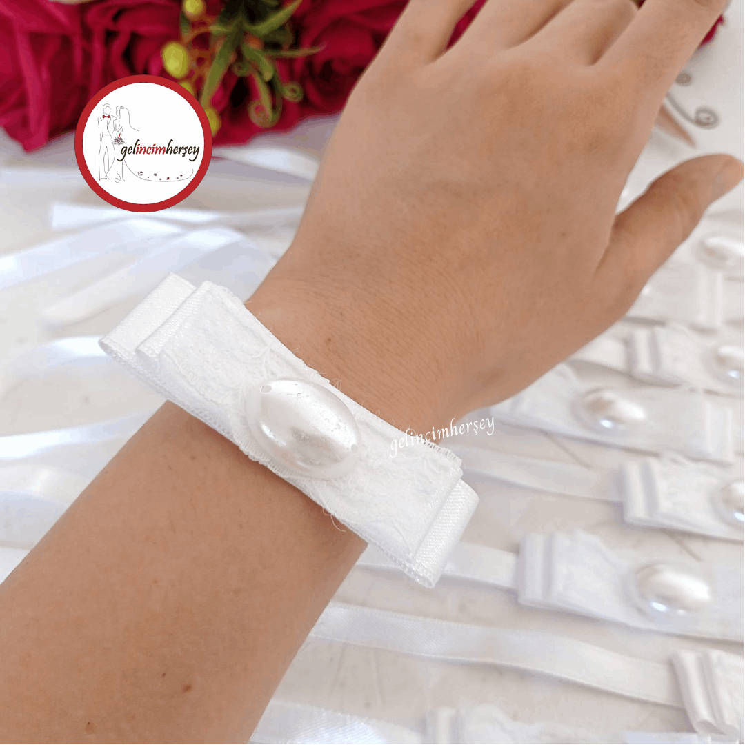 Gelincimherşey 10’lu Kına Gecesi Dantelli Taş ve İnci Süslemeli Nedime Bilekliği Seti