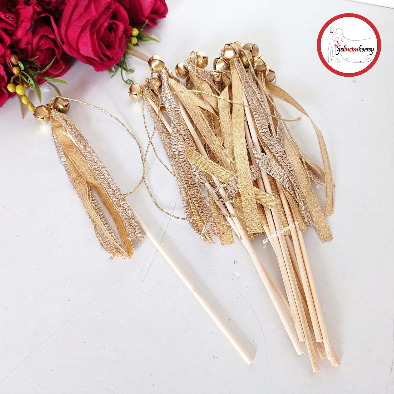 Gelincimherşey 10’lu Kordon Kurdele Süsleme Ahşap Çubuk Zil