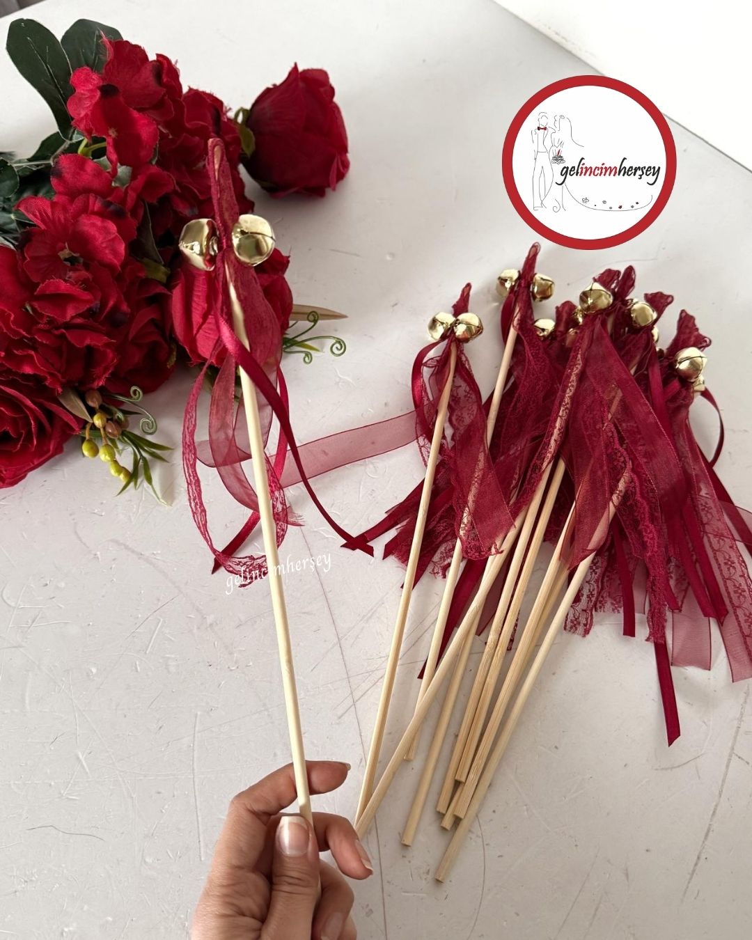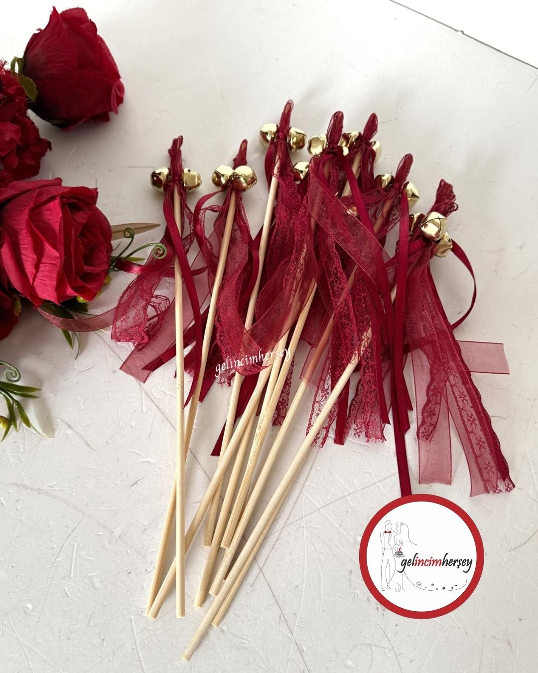 Gelincimherşey 10’lu Kurdele Süslemeli Ahşap Çubuk Zil
