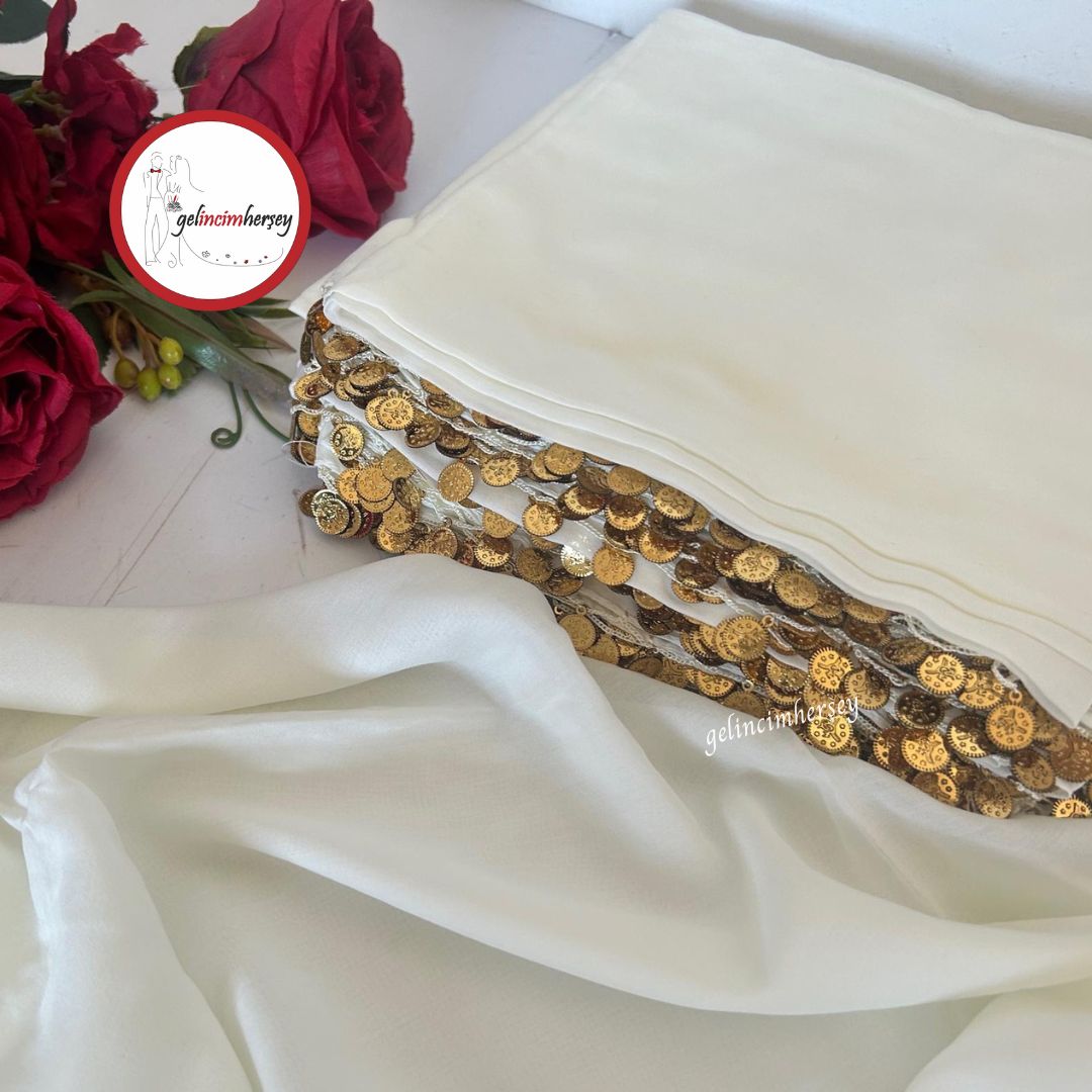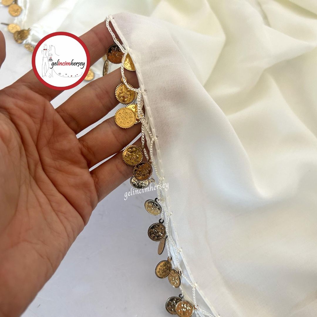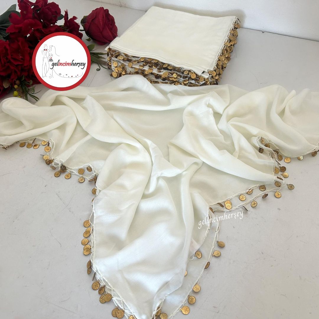 Kına gecelerinin vazgeçilmez aksesuarı olan pul payet işlemeli sağdıç nedime şalı setleri, nedimelerinizin konseptine ışıltı katmak için özel olarak tasarlandı. Gold payet detayları ve hafif yapısı, hem şık hem de kullanışlı bir kullanım sunar. Yazma, yağlık veya şal olarak rahatlıkla kullanılabilir.