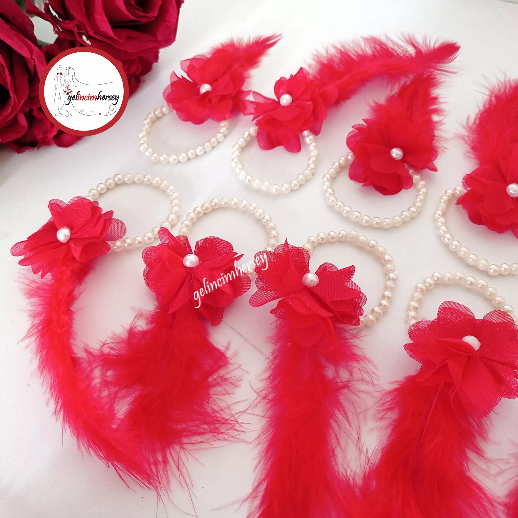 Gelincimherşey 12’li Kumaş Çiçekli İncili Tüylü Nedime Bilekliği