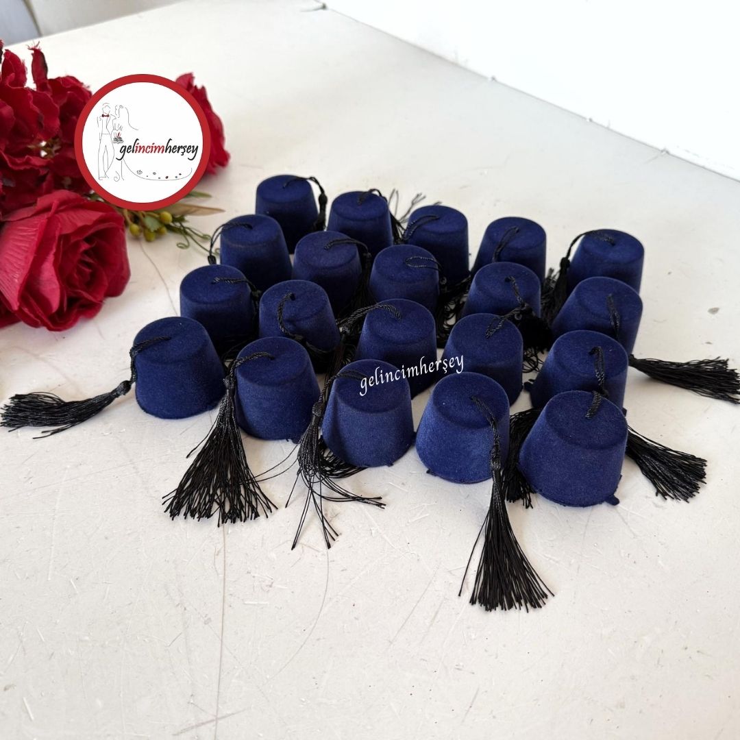 Gelincimherşey 20’li Fes Şeklinde Püsküllü Süet Kaplı Kına Kutusu – Dağıtmalık Hediyelik Kına
