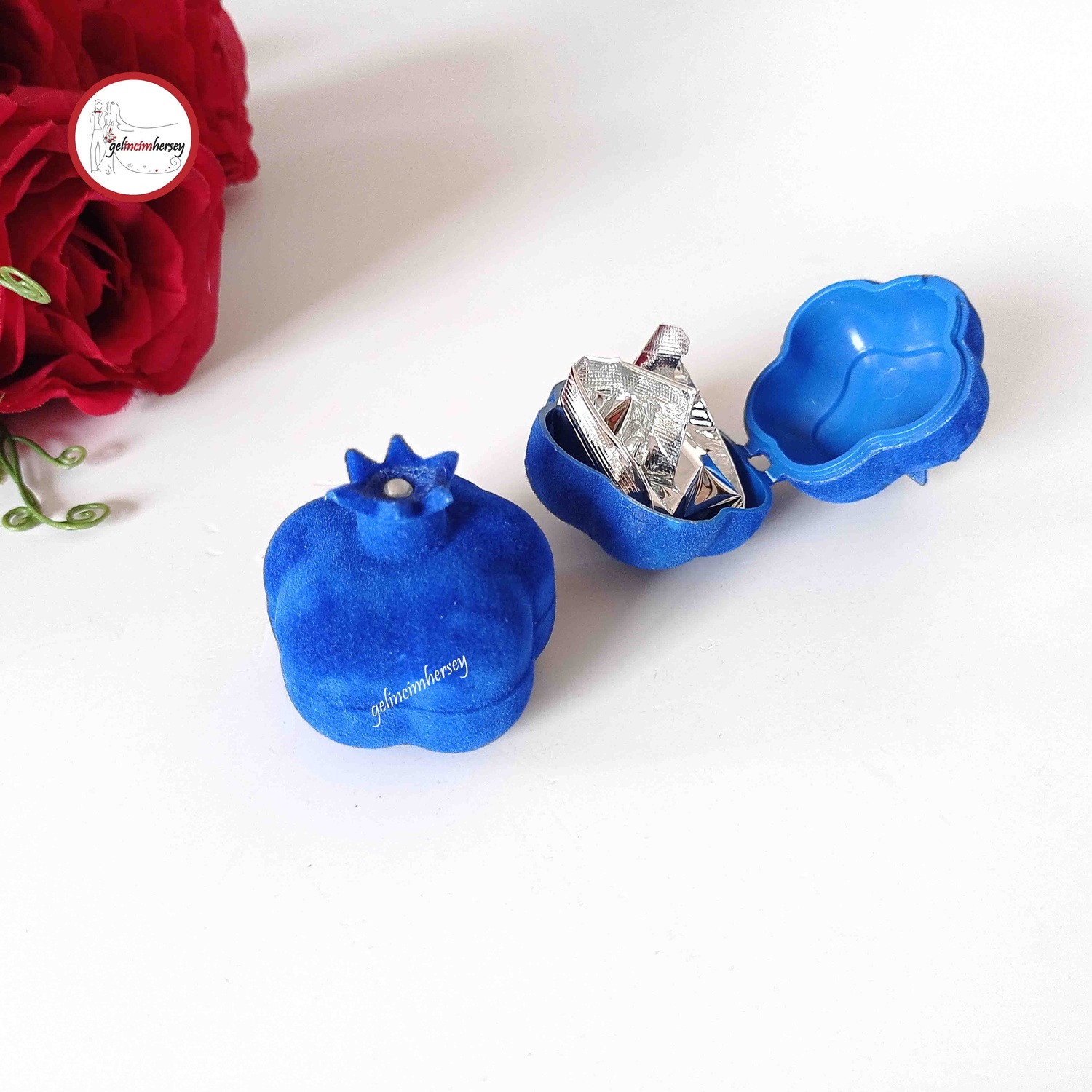 Tasarım: Nar şeklinde plastik kutu, taş detaylı ve süet kaplı