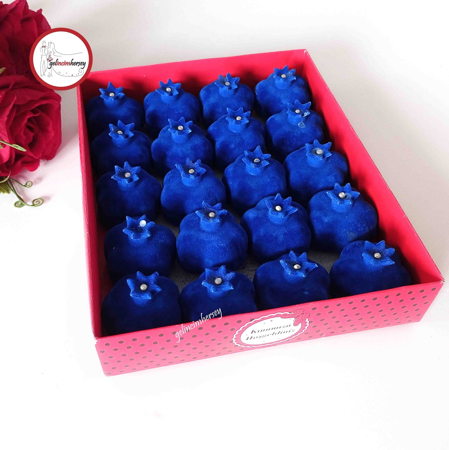 Gelincimherşey 20’li Taşlı Süet Kaplı Nar Şeklinde Plastik Kutu Hediyelik Kına