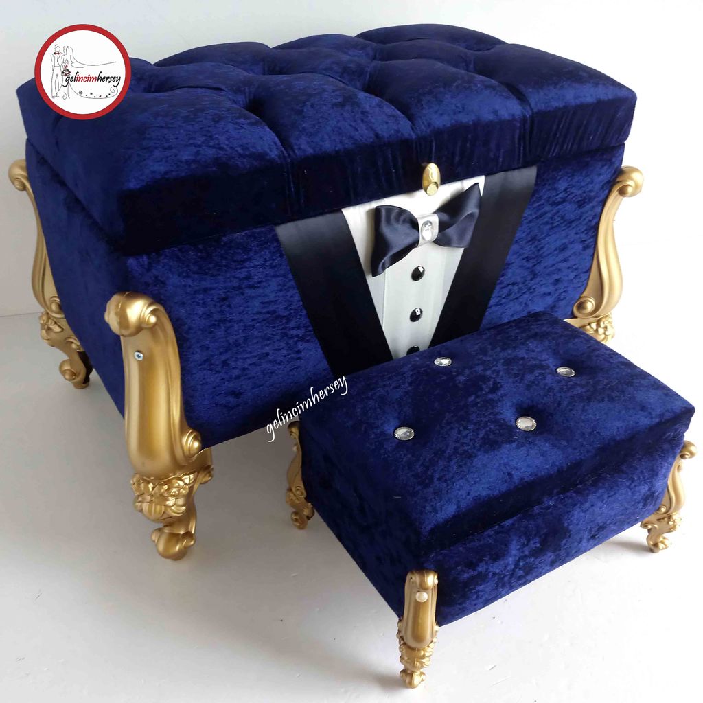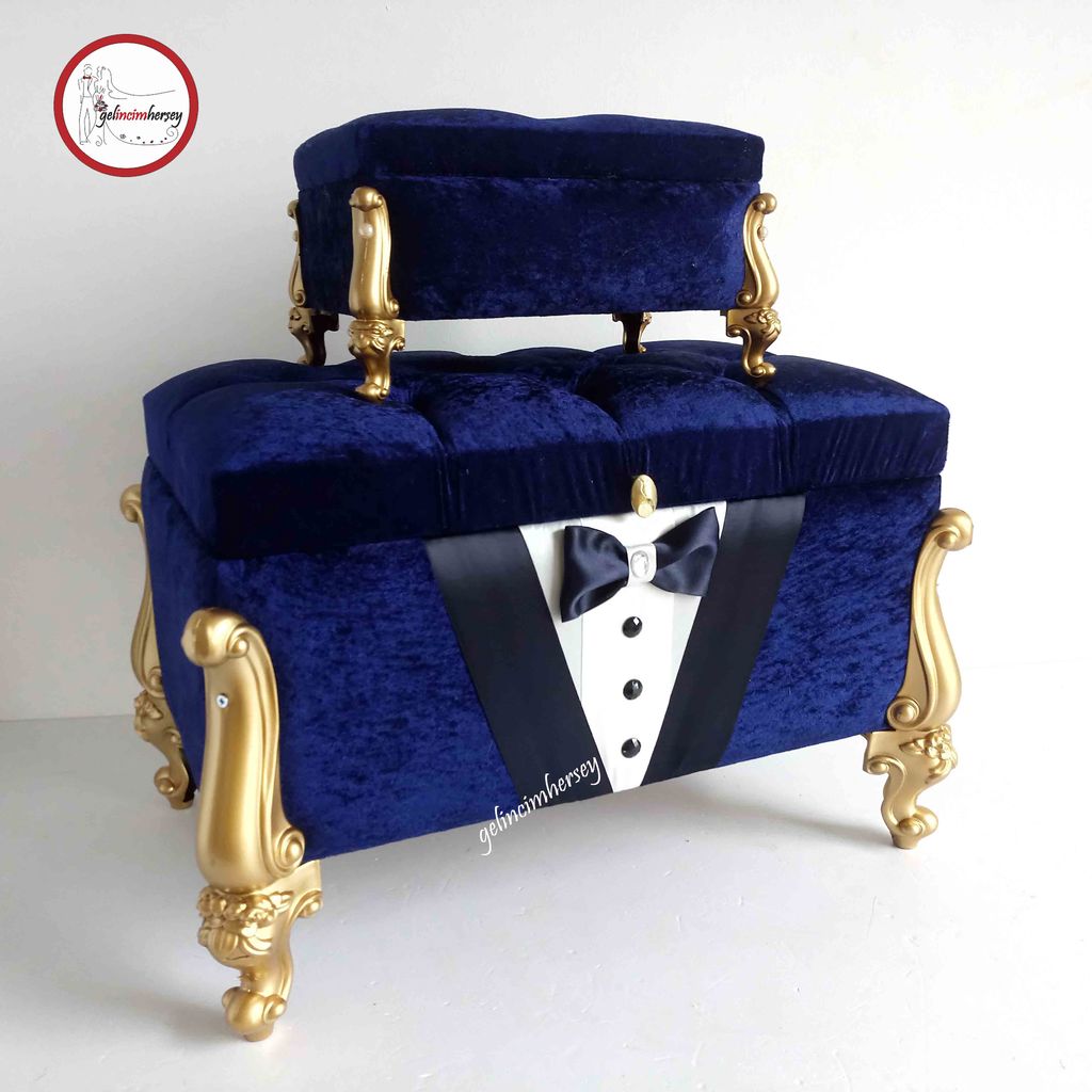 Gelincimherşey 2’li Kadife Damatlık Şeklinde Süslemeli Nişan Damat Sandığı