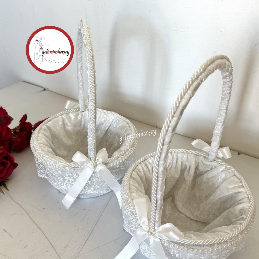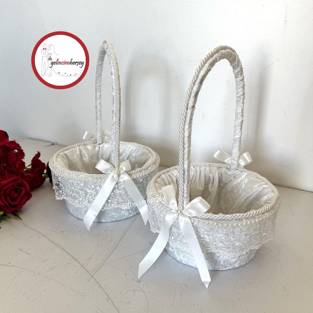 Gelincimherşey 2’li Kadife Kaplama Dantel Süslemeli Çiçekçi Kız Düğün Sepeti