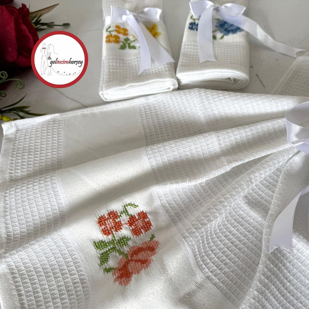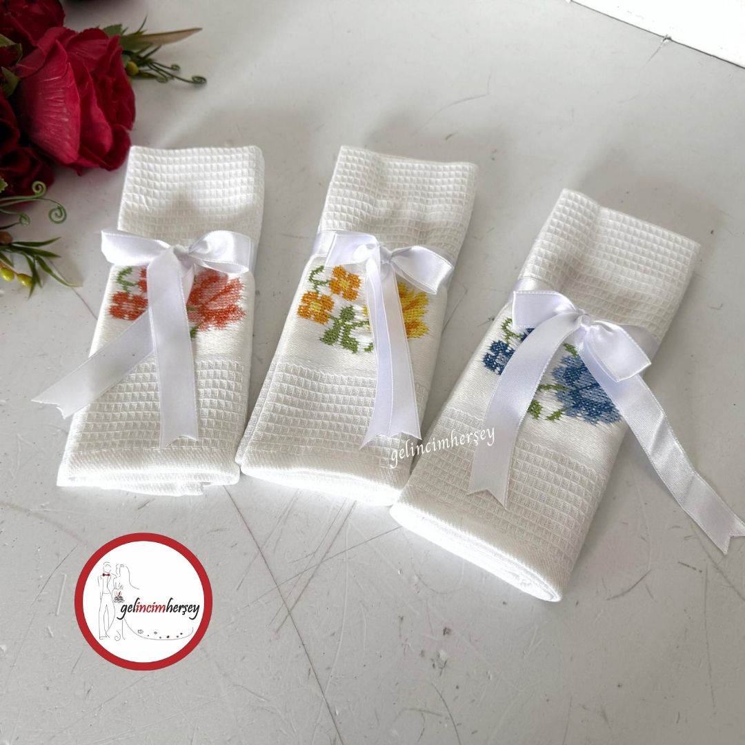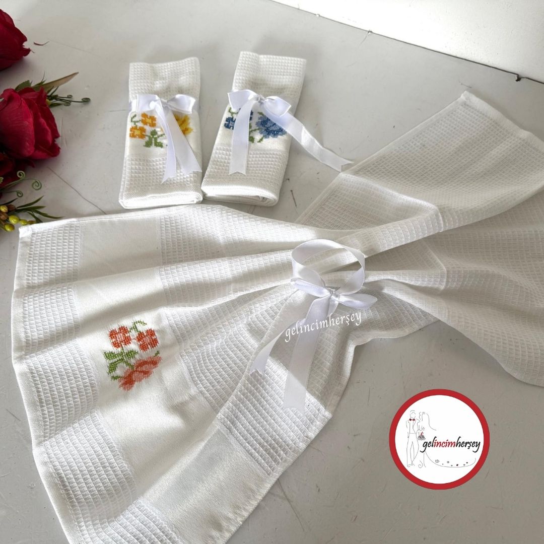 Gelincimherşey 3’lü Beyaz Pamuklu Etamin İşleme Büyük Boy Mutfak Bezi