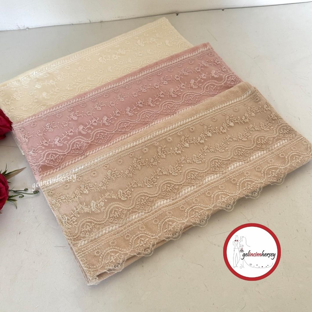Detay: Çift sıra zarif dantel işlemeli kenar süsü