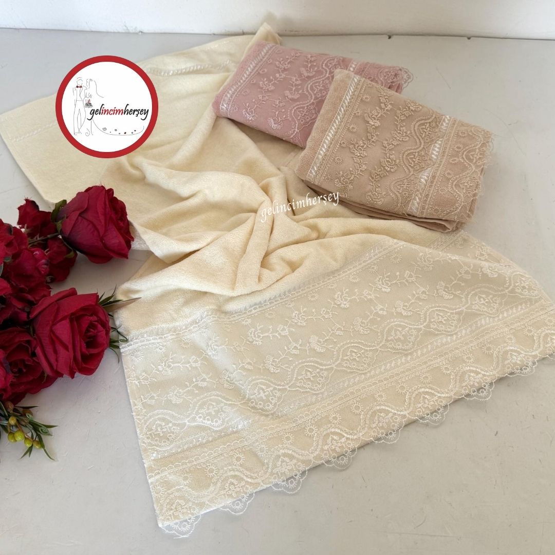Gelincimherşey 3’lü Çift Dantel Detaylı El Yüz Havlusu
