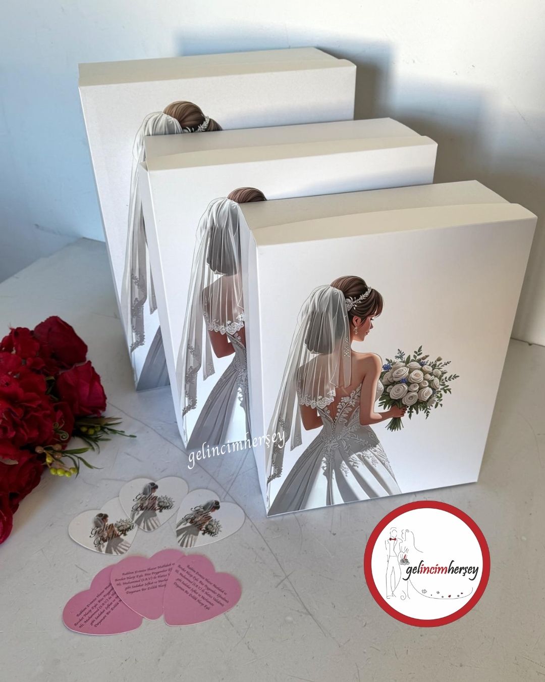 Çeyiz Kutusu / Gelincimherşey 3’lü Gelin Resimli Gelin Bohçası Çeyiz Kutusu