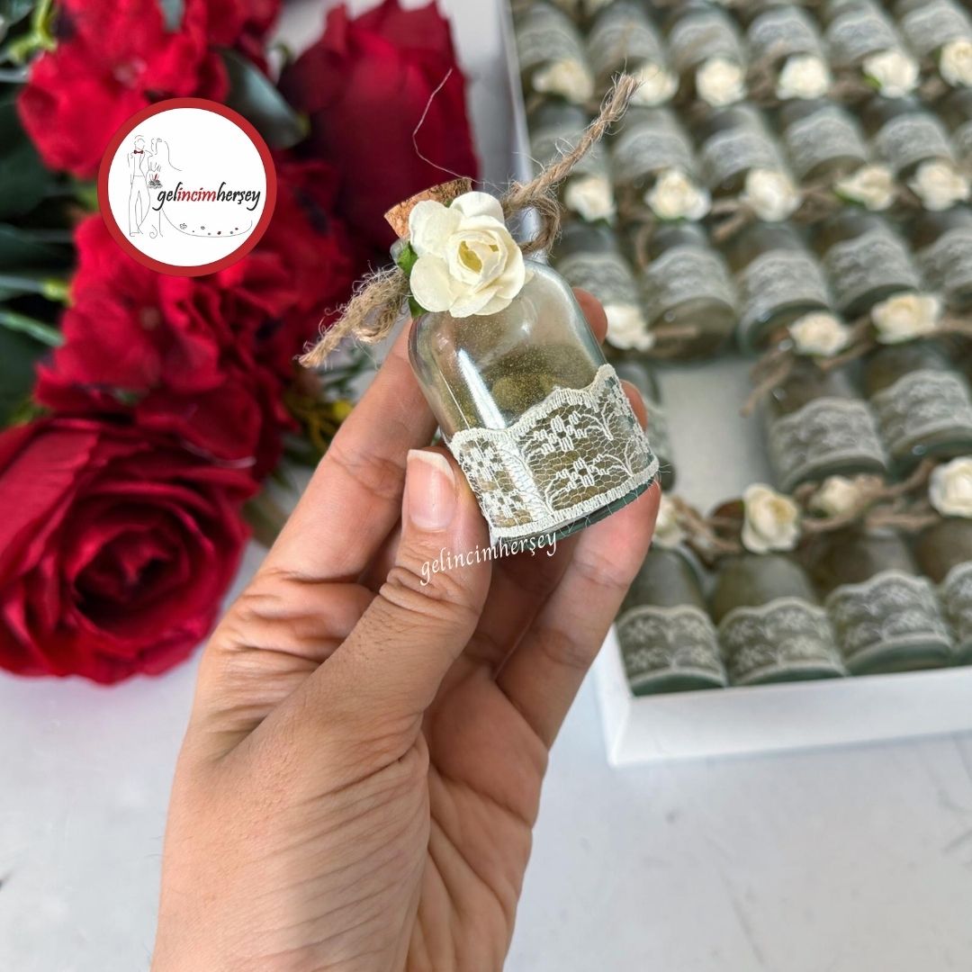 Gelincimherşey 40’lı Cam Şişe Çiçek Süslemeli Hediyelik Kına
