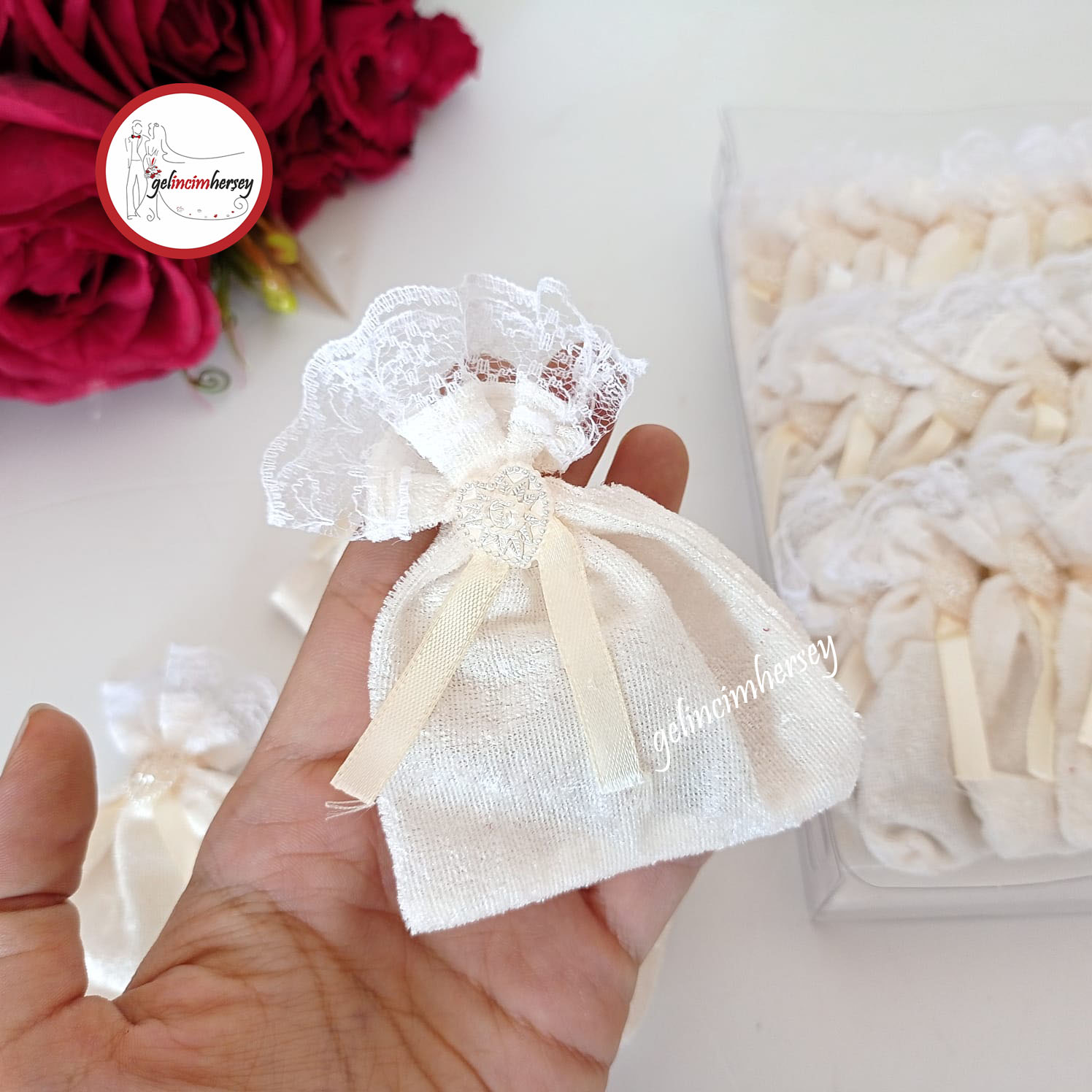 “Gelincimherşey 50’li Kadife Dantelli İnci Süslemeli Kese Hediyelik Kına” için yorum yapan ilk kişi siz olun