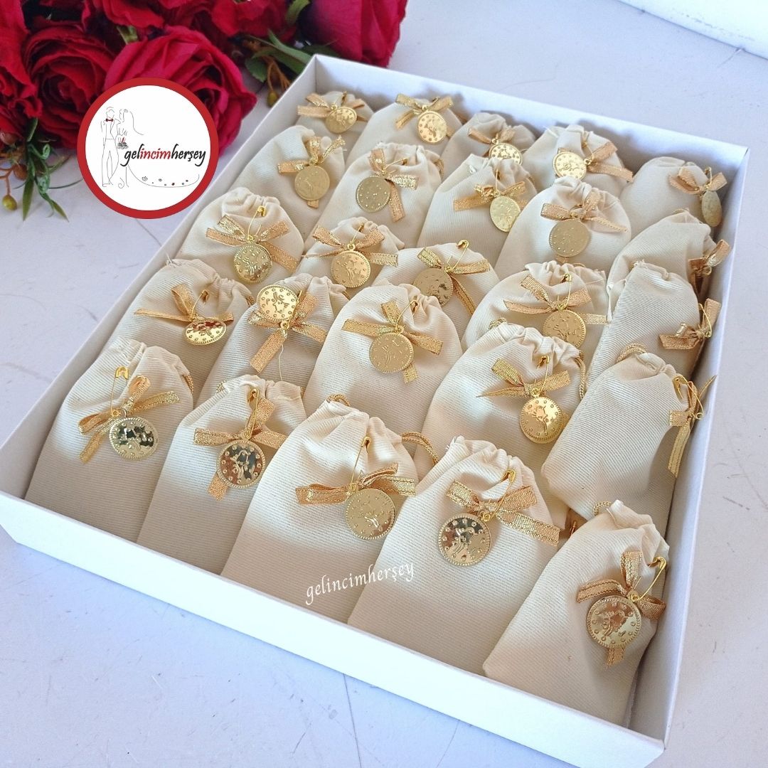 Gelincimherşey 50’li Payet Çeyrek Süslemeli Süet Kese Hediyelik Kına – Şık Sunumu ile Kına Gecelerinin Gözdesi
