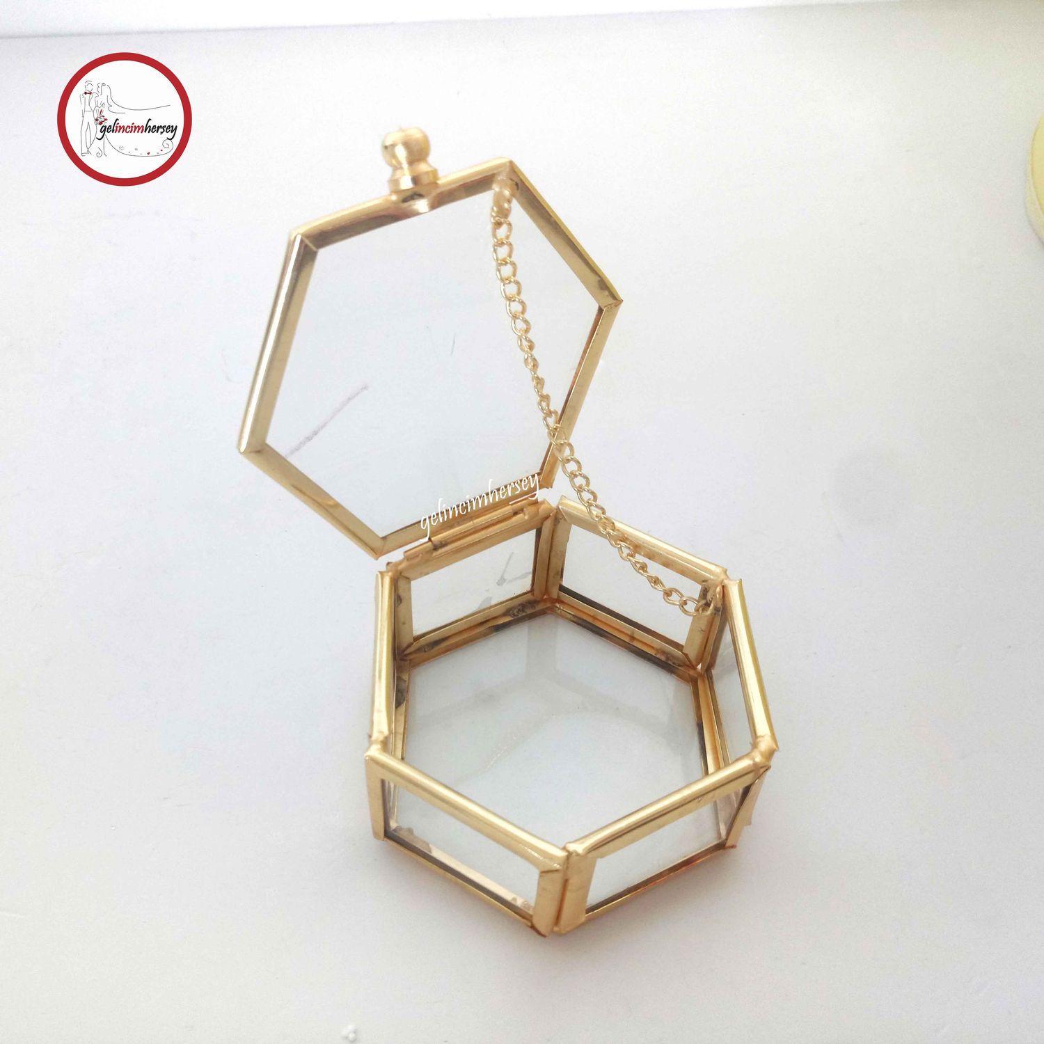 Gelincimherşey Altıgen Yüzük İçin Kapaklı Dekoratif Cam Kutu – Nişan ve Söz Törenleri İçin Şık Tasarım