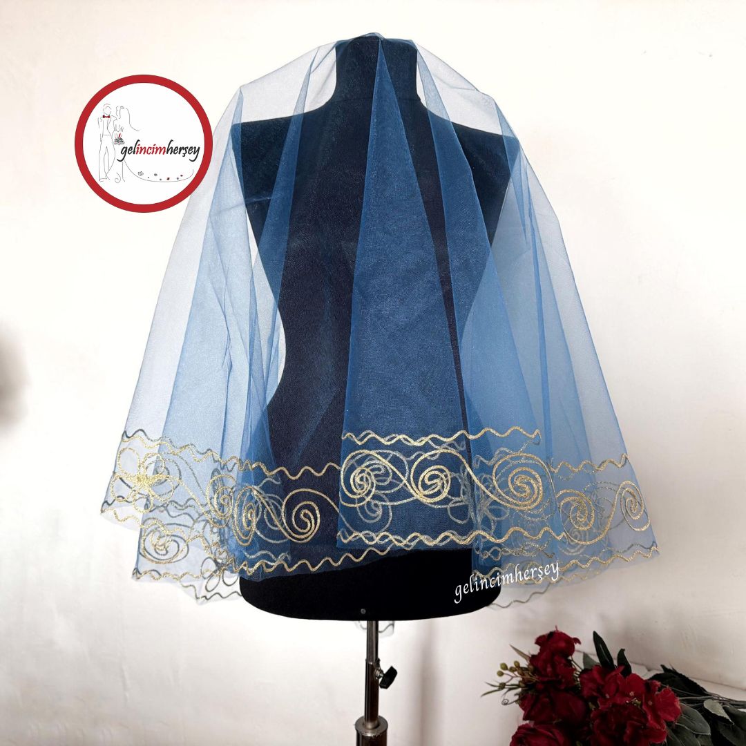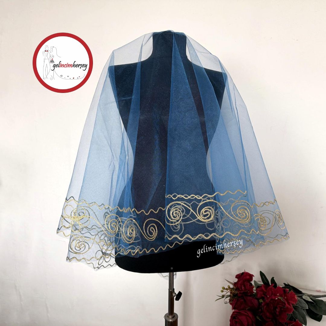 1 Adet Altın Nakışlı Gelin Duvağı (Çap: Yaklaşık 1.50 m)