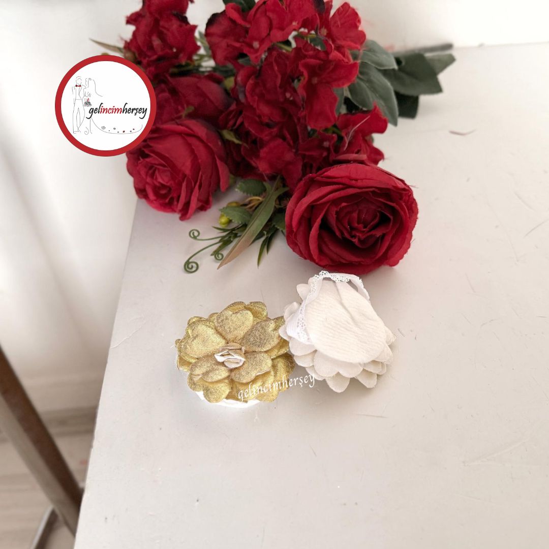 Gelincimherşey Altın Nakışlı Kına Gecesi Gelin Duvağı ve El Gülü Seti – 1.50 m Çap