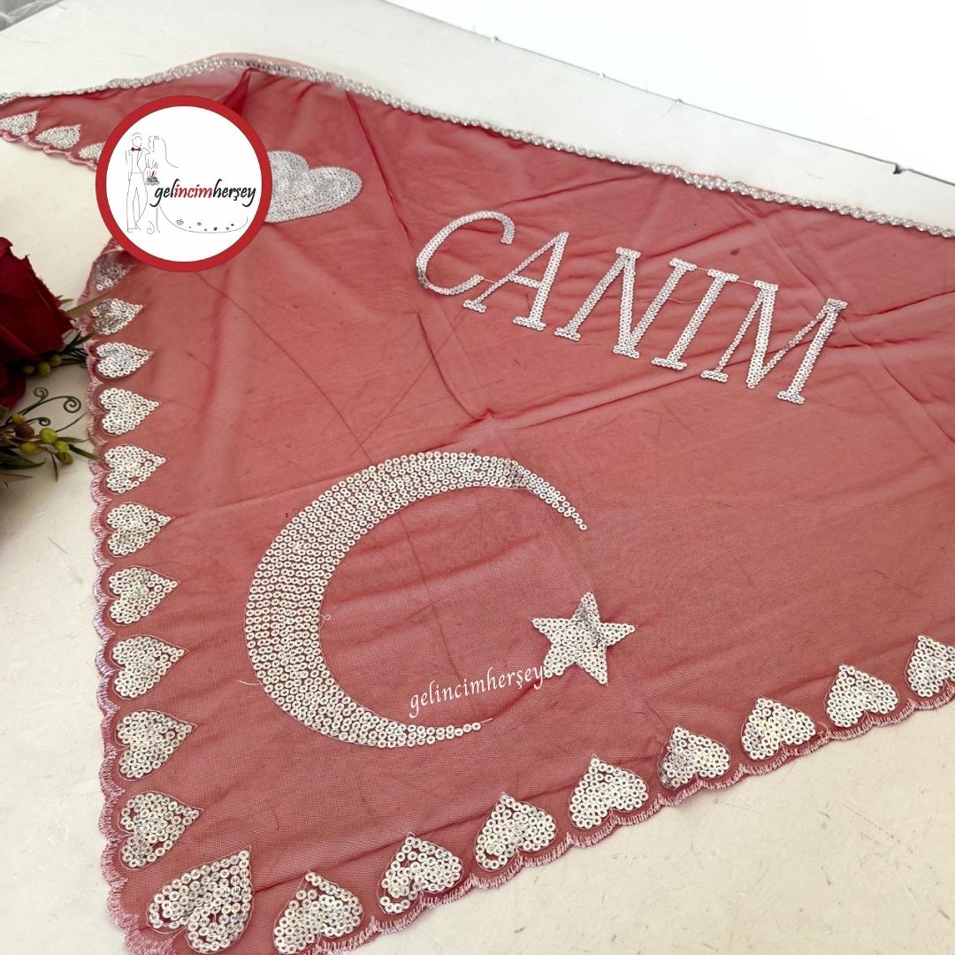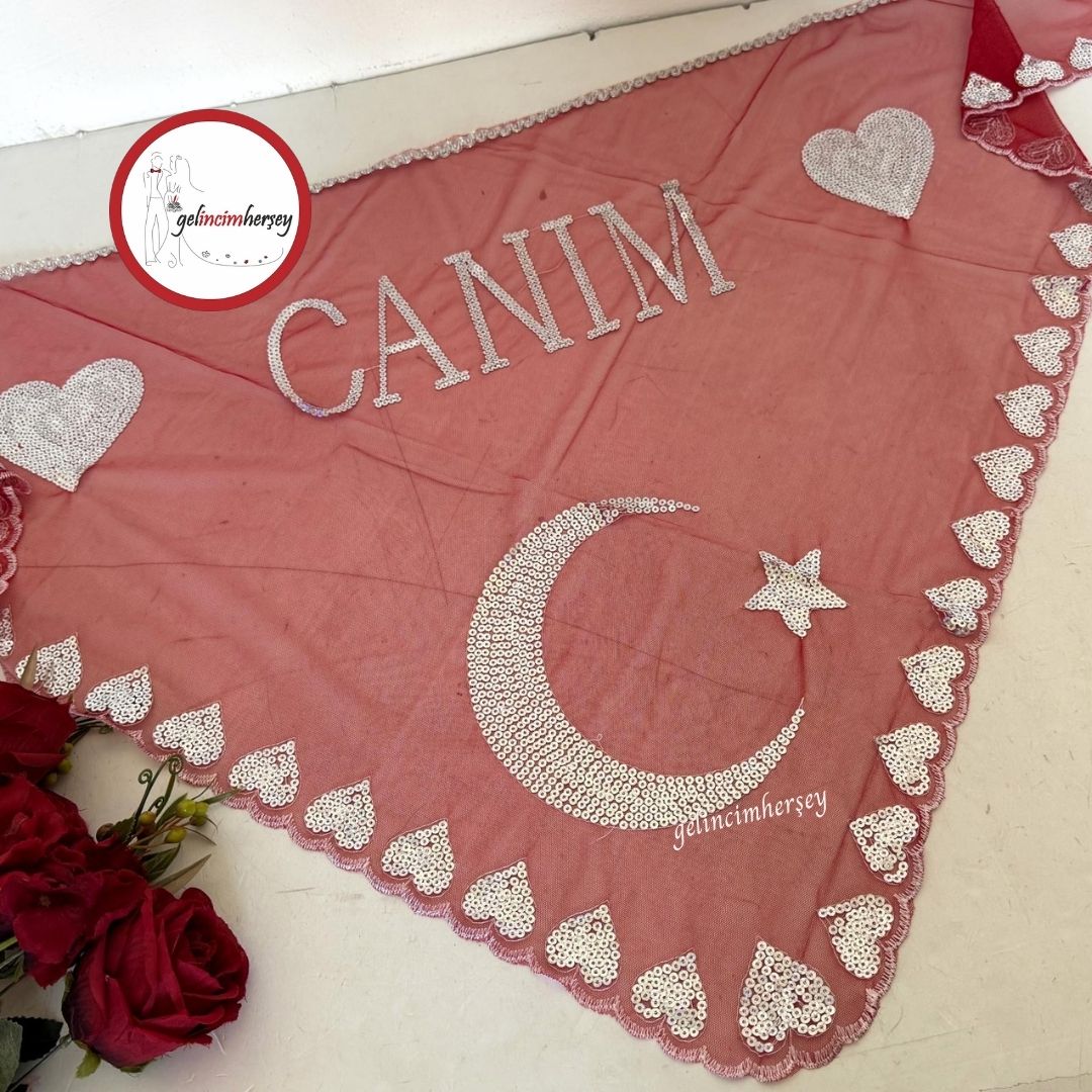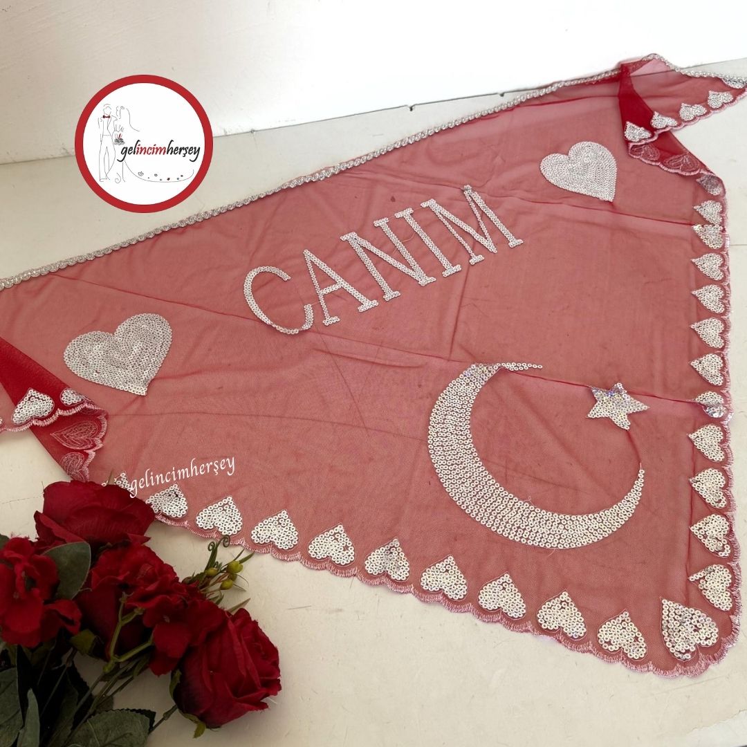 Gelincimherşey Ay Yıldızlı Kırmızı Yazılı Üçgen Şal (CANIM / AŞKIM Yazılı)
