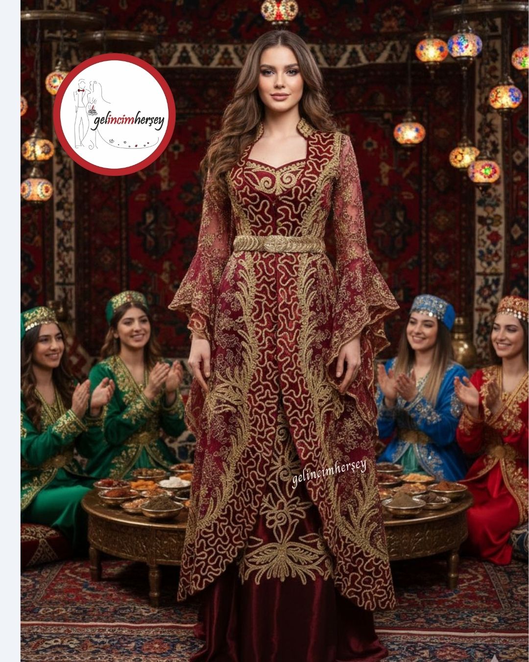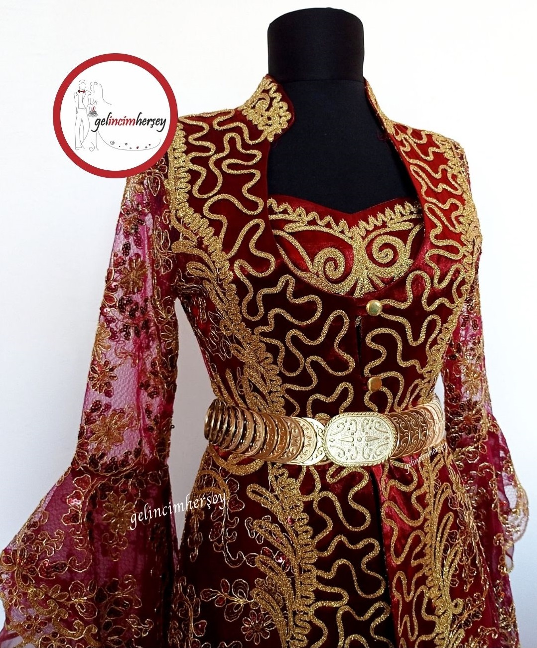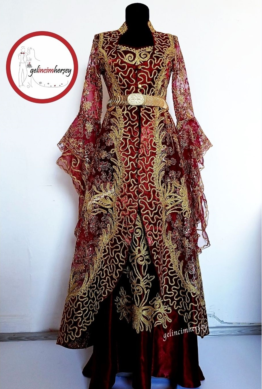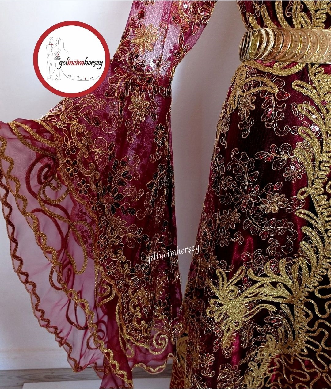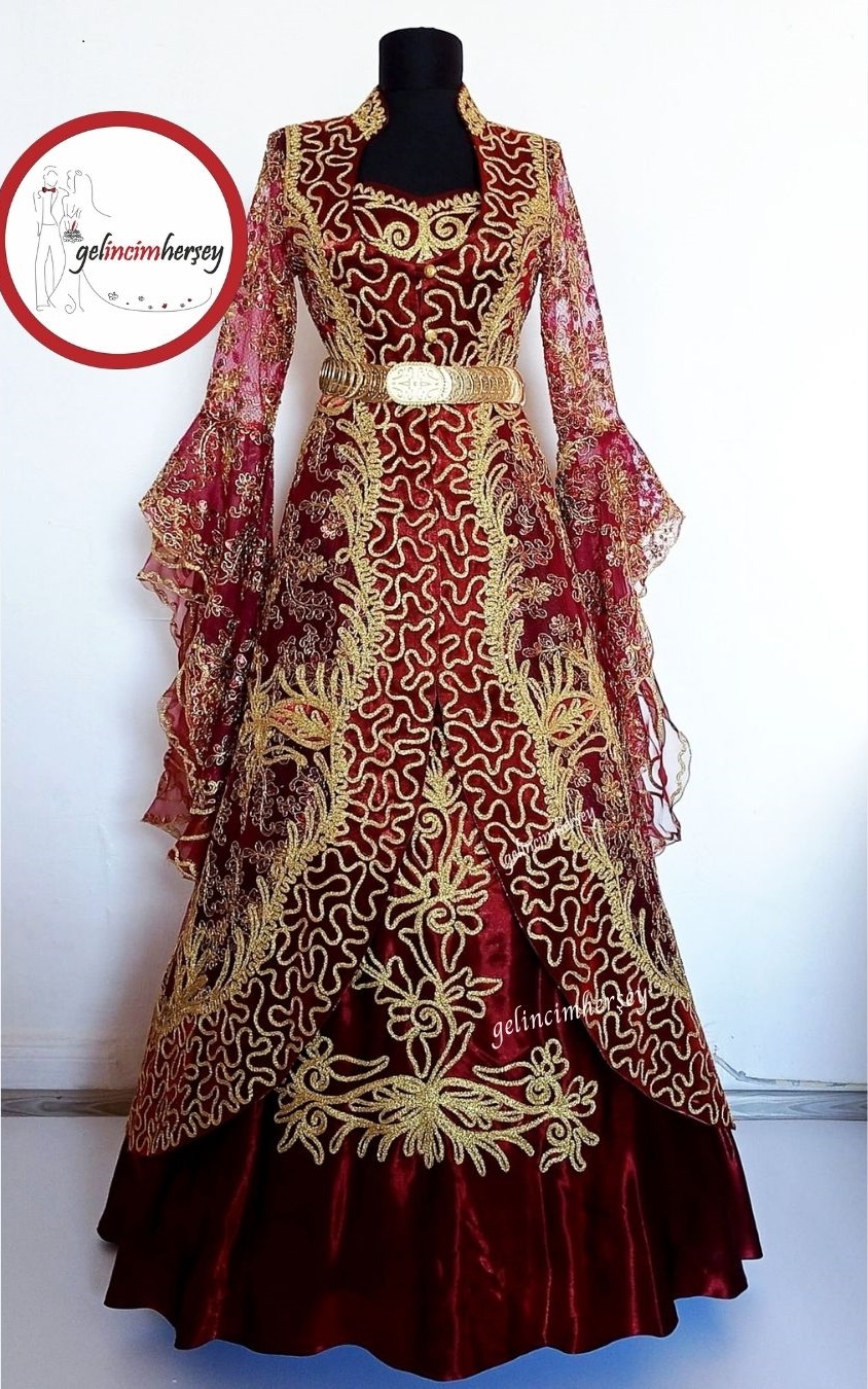Kaftan Bindallı /Gelincimherşey Bordo İşlemeli Hürrem Model Kaftan Bindallı