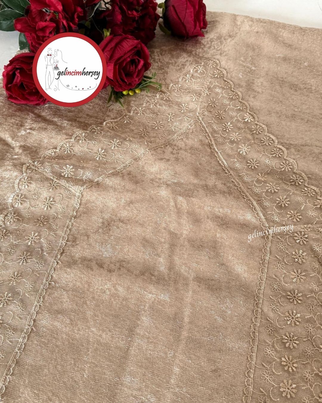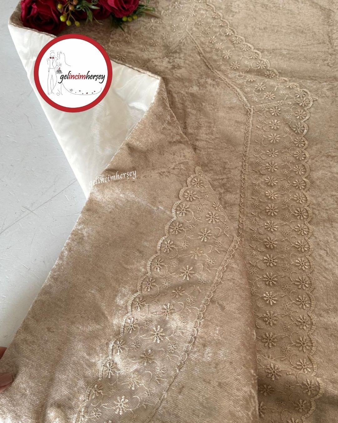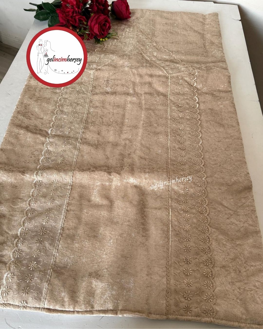 Gelincimherşey Güpürlü Kadife Seccade – Çeyiz Bohça İçin Elyaflı Seccade (Ekru, Pudra, Gri, Bej)