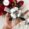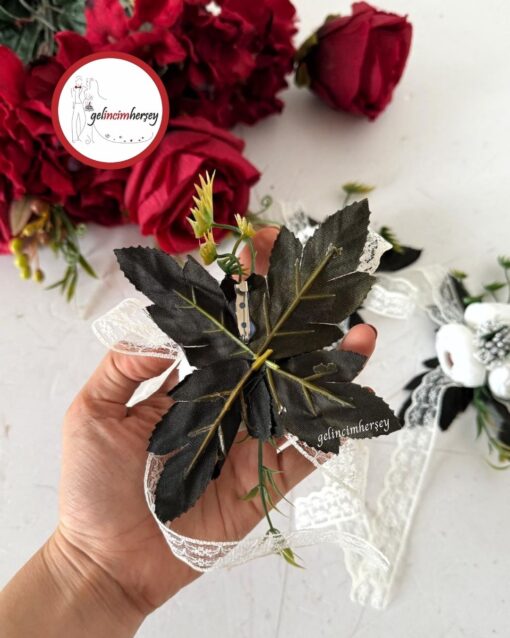 Çeyiz bohçalarınızı, nişan bohçalarınızı ya da özel hediye paketlerinizi süslemenin en zarif yolu: Çiçekli 3’lü Bohça Süsü. El işçiliğiyle özenle hazırlanan bu set, doğal görünümlü yapay çiçekler, dantel kurdeleler ve yeşil yaprak detaylarıyla şıklığı ön plana çıkarır.