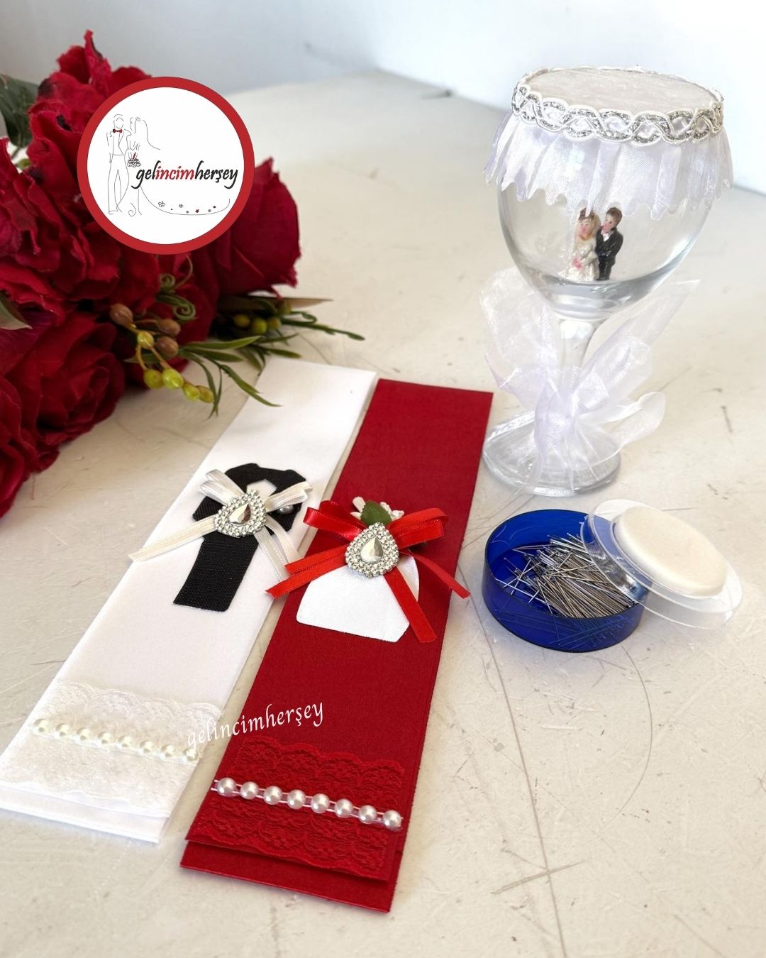 Gelincimherşey Gelin Damat Takı Töreni için Takı Kurdelesi İğnelik İğne