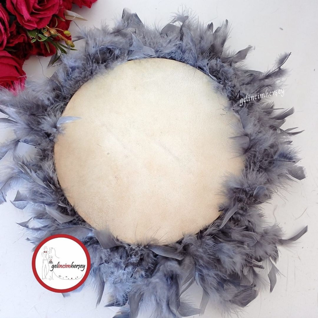 Gelincimherşey Gelin için Tüylü 27 cm Çapında Orijinal Deri Tef – Işıltılı Ritmin Zarif Yansıması