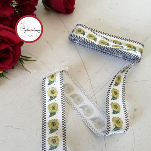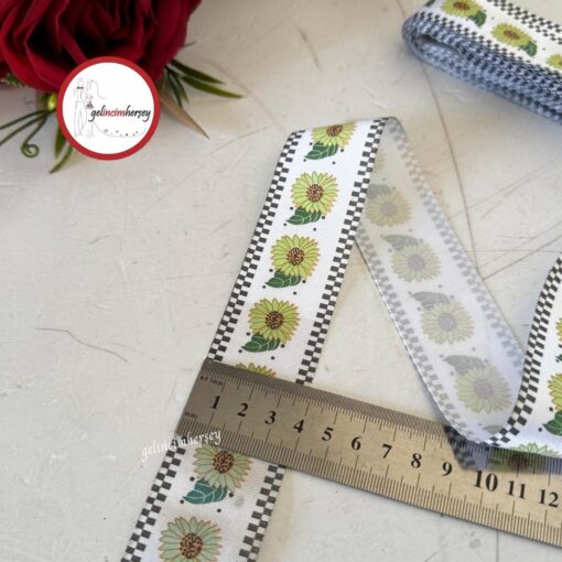 Gelincimherşey Güne Bakan Çiçekli Desenli Polyester Kurdele 4 cm 9 mt