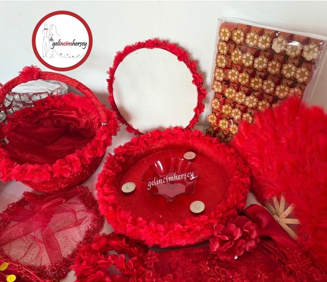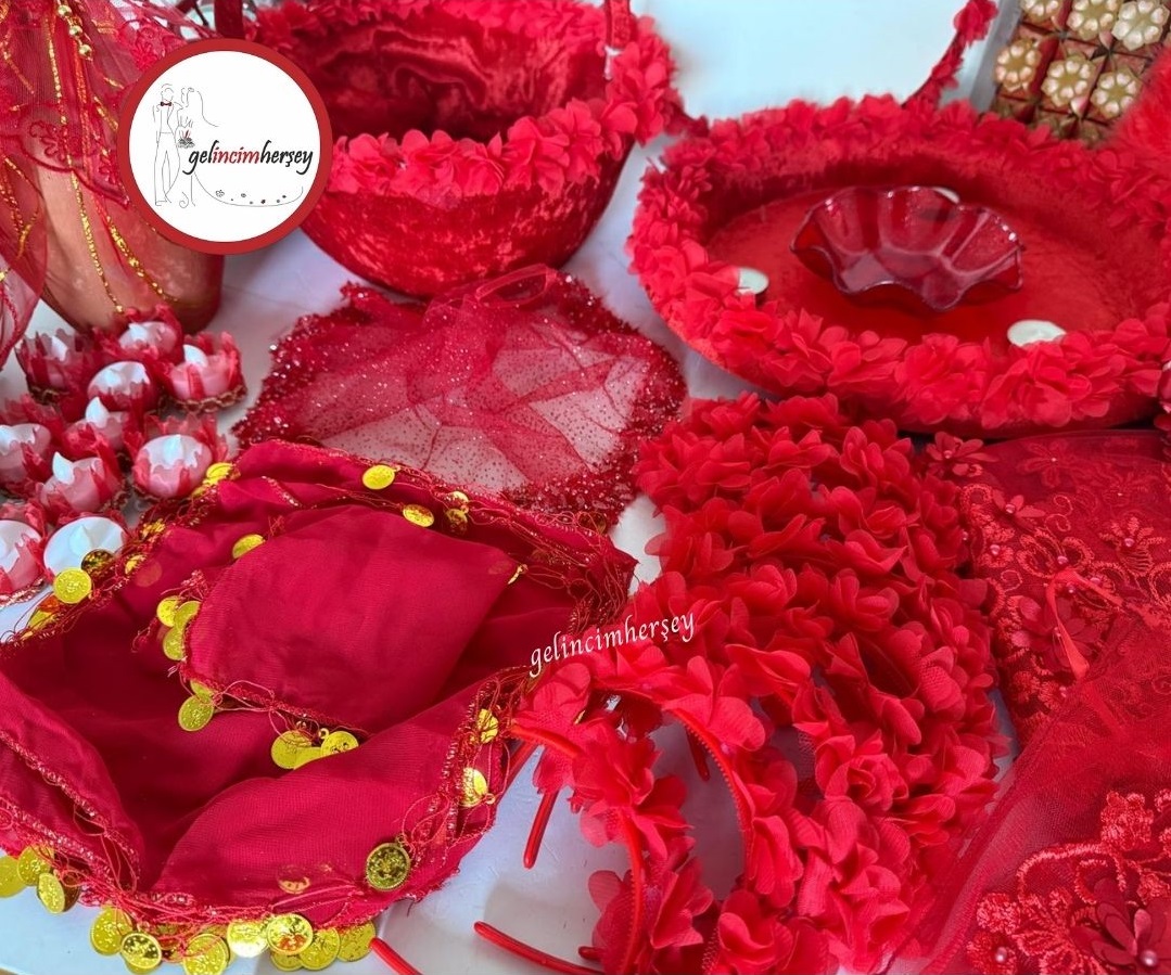 Kına geceniz için ihtiyacınız olan her şey burada! Gelincimherşey Kırmızı Hürrem Kına Seti, geleneksel ve modern tasarımların birleşimiyle kına gecenizi unutulmaz kılacak.