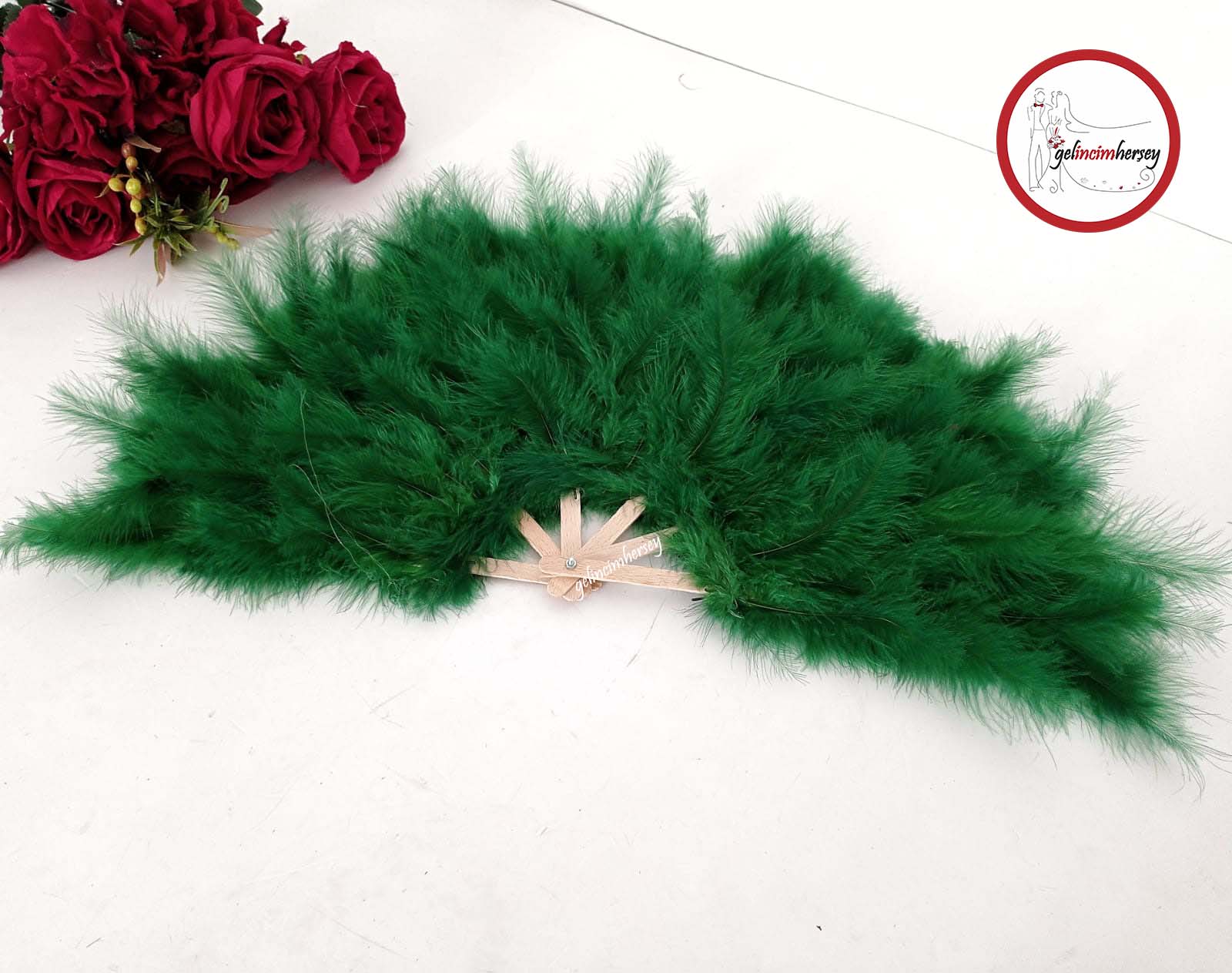 Gelincimherşey Tüylü Ahşap Kasnaklı Gelin Yelpazesi