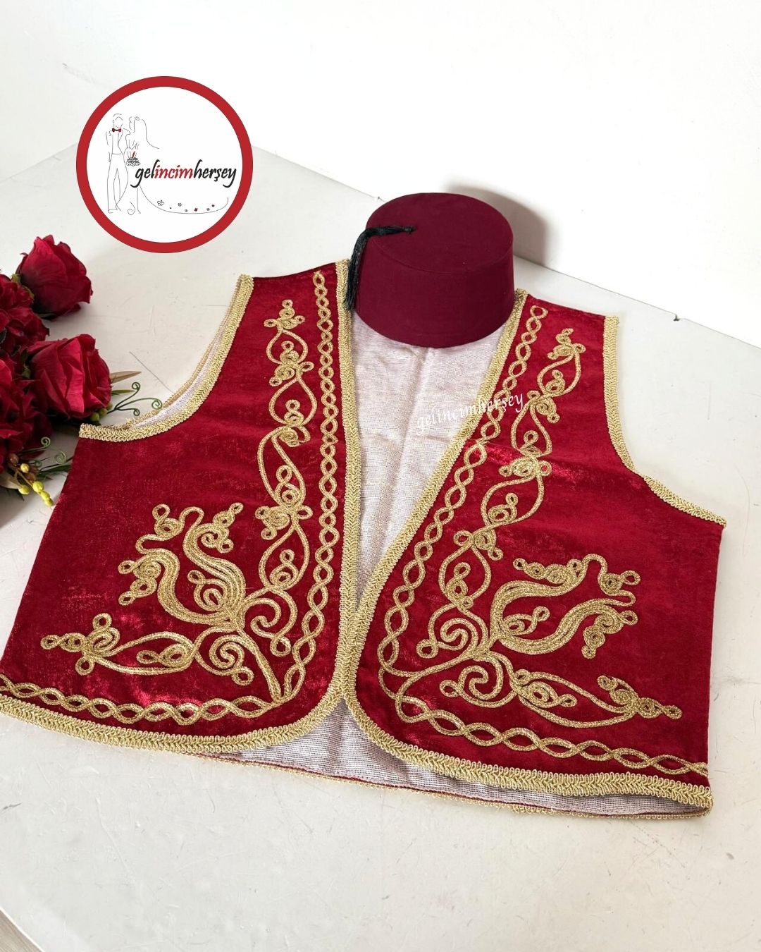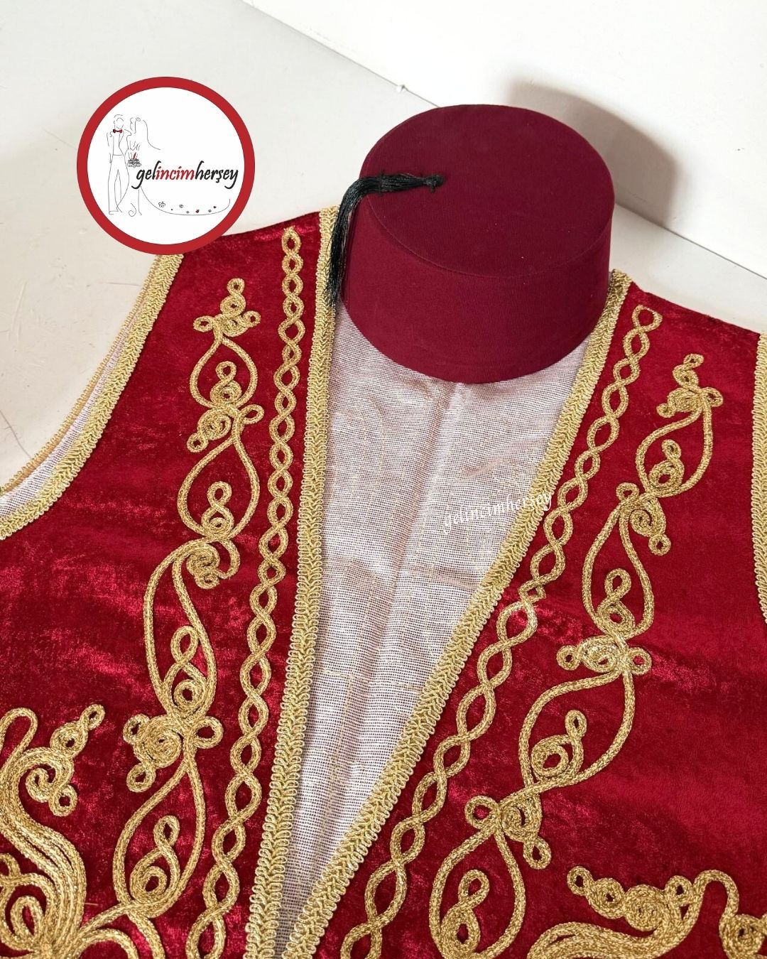 Gelincimherşey Yöresel Kültürel Kadife Altın İşlemeli Osmanlı Yelek Fes