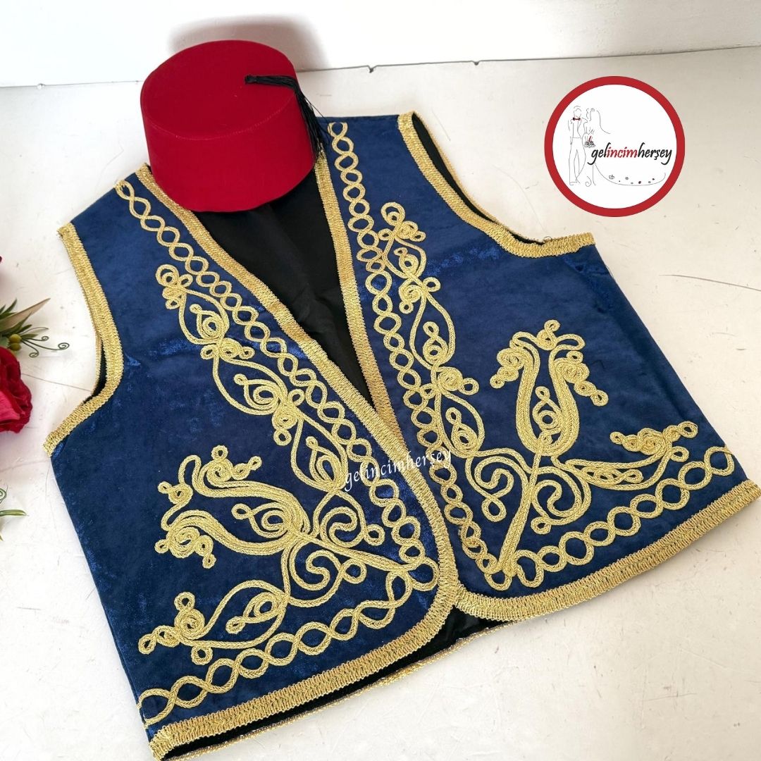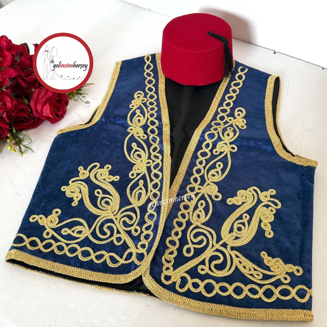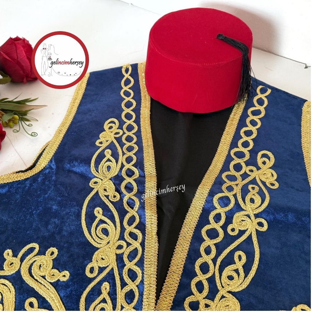 Gelincimherşey Yöresel Kültürel Kadife Altın İşlemeli Osmanlı Yelek Fes