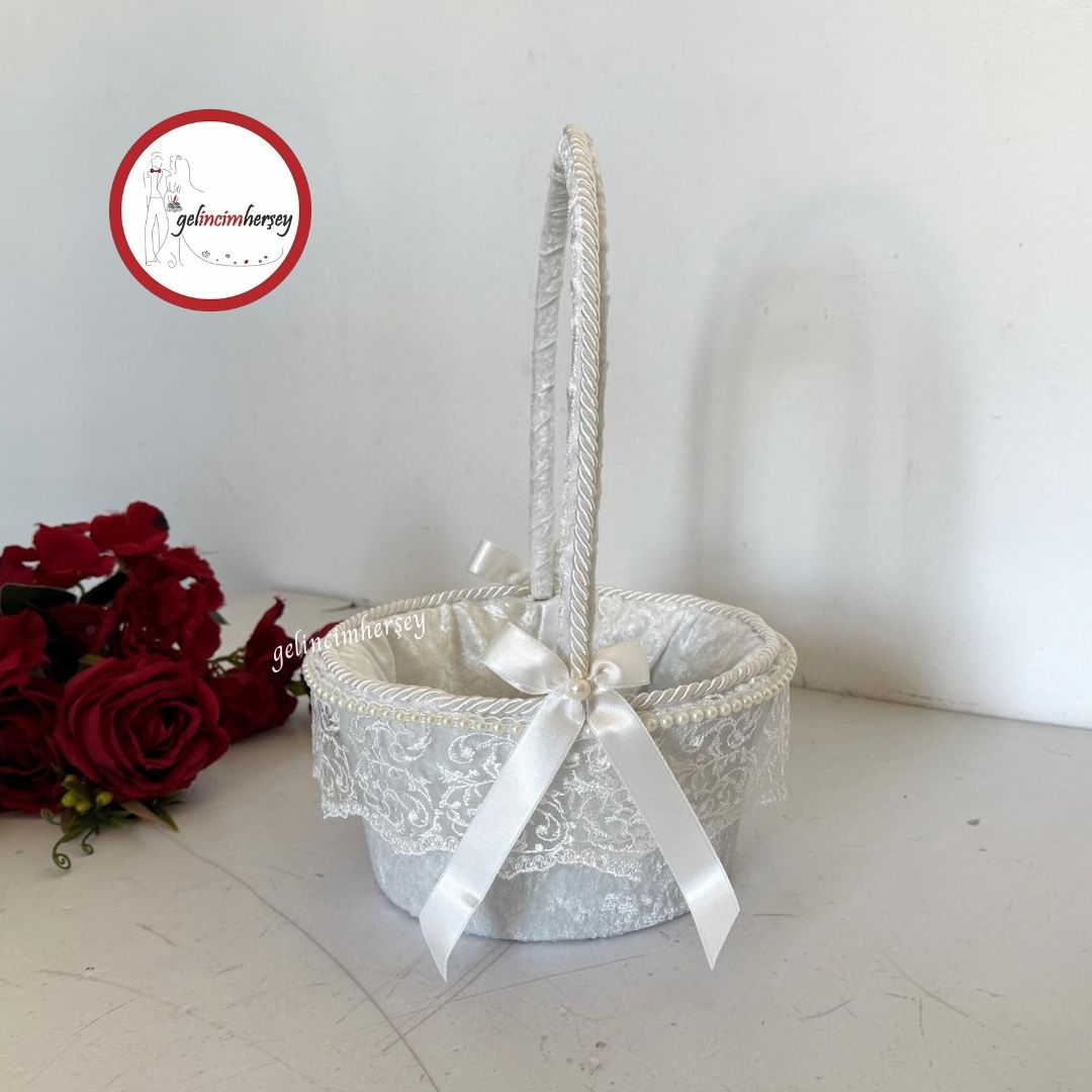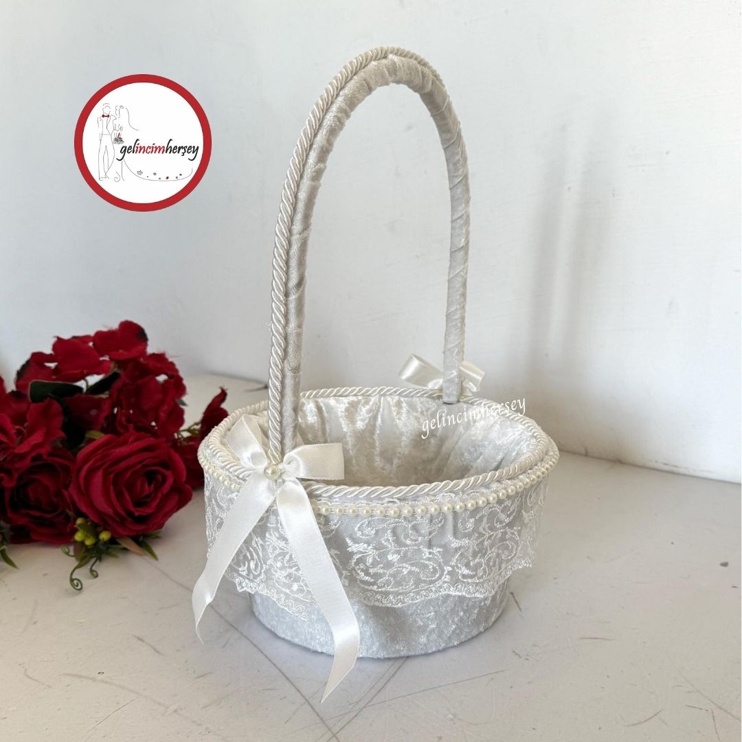 Gelincimherşey Kadife Kaplama Dantel Süslemeli Çiçekçi Kız Düğün Sepeti – Gelincimherşey