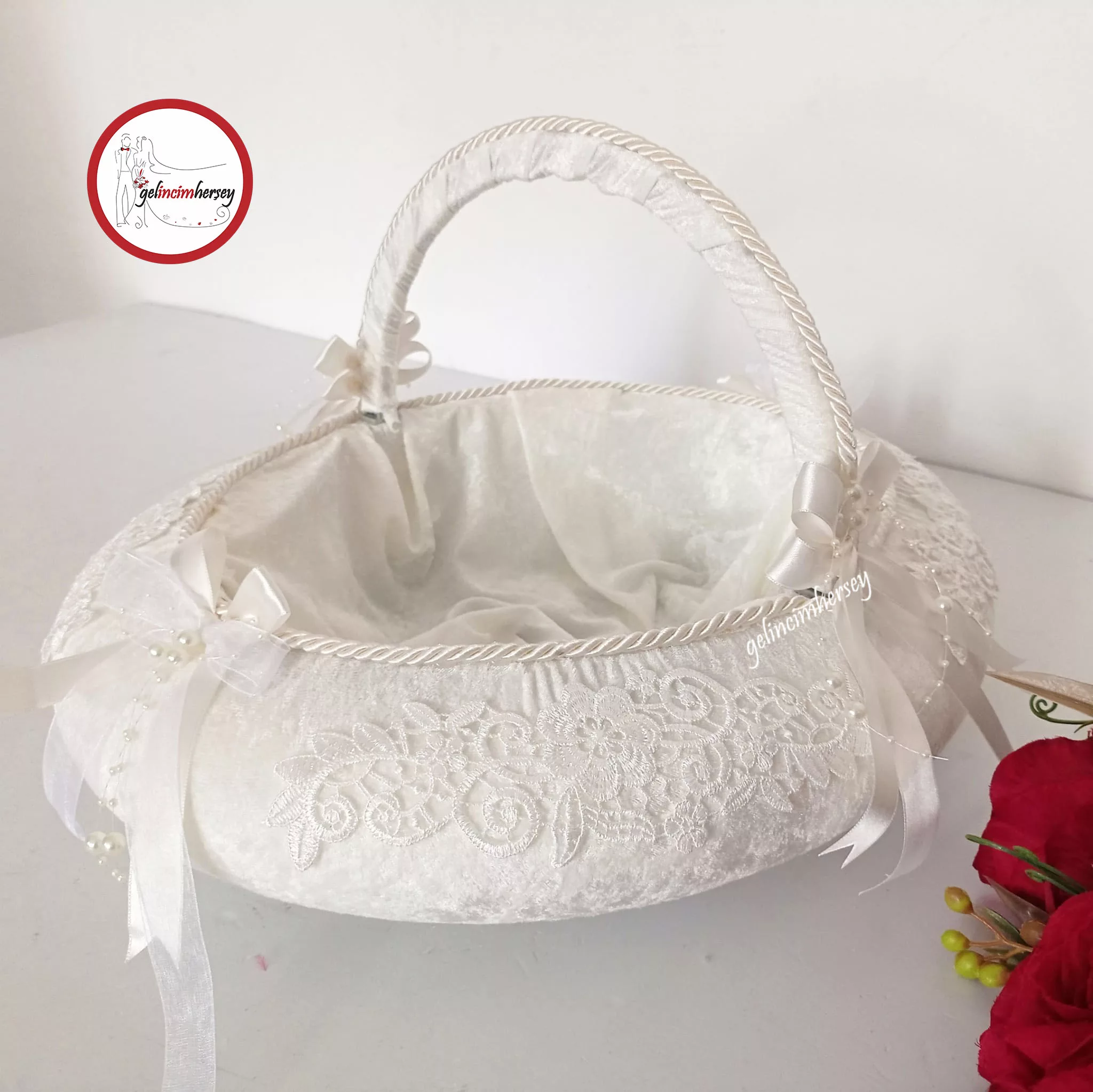 Gelincimherşey Kadife Kaplama Ekru Nikah Şekeri & Hediyelik Sepeti, düğün, nişan, söz ve kına organizasyonlarınızda hem şık hem işlevsel bir tamamlayıcı olarak öne çıkıyor.