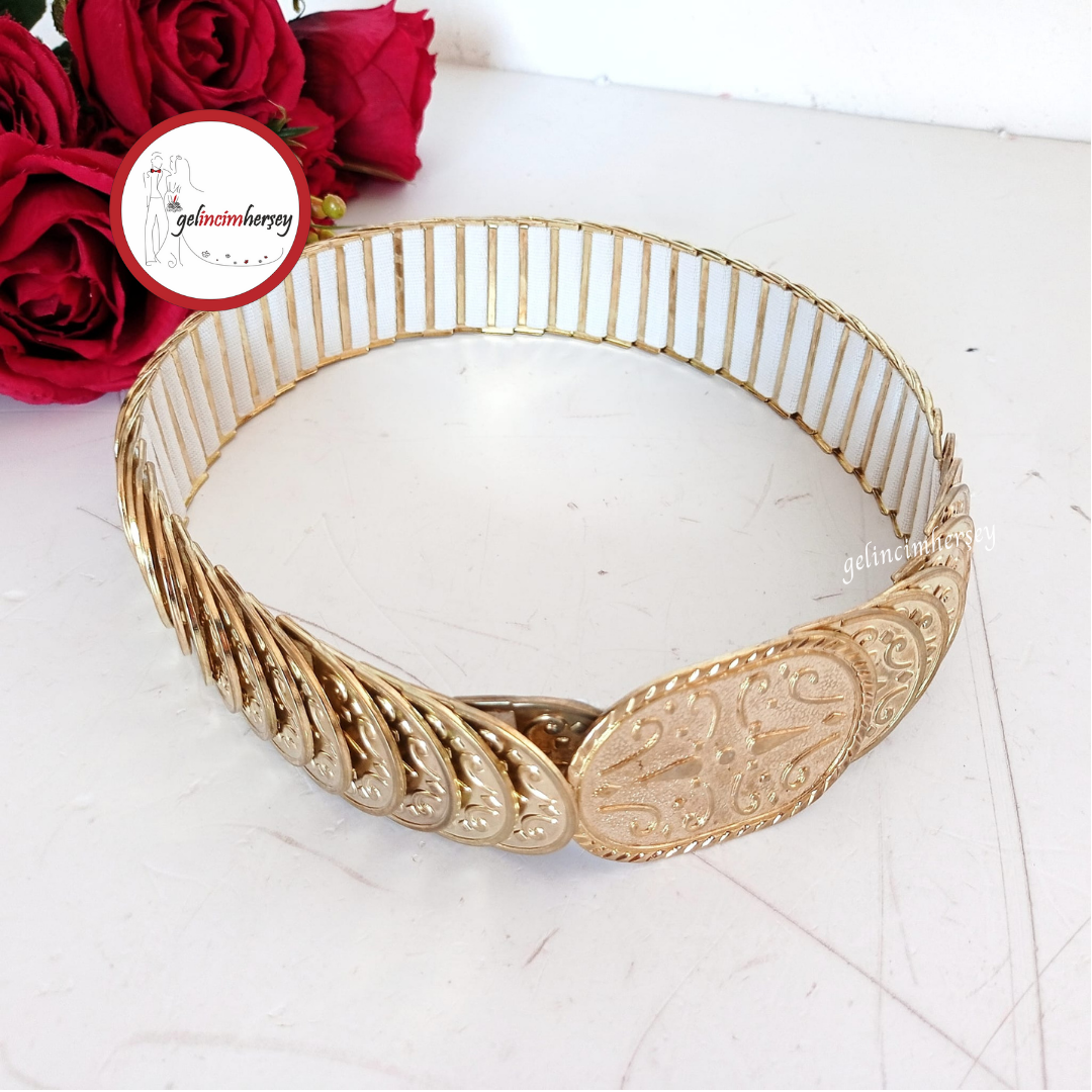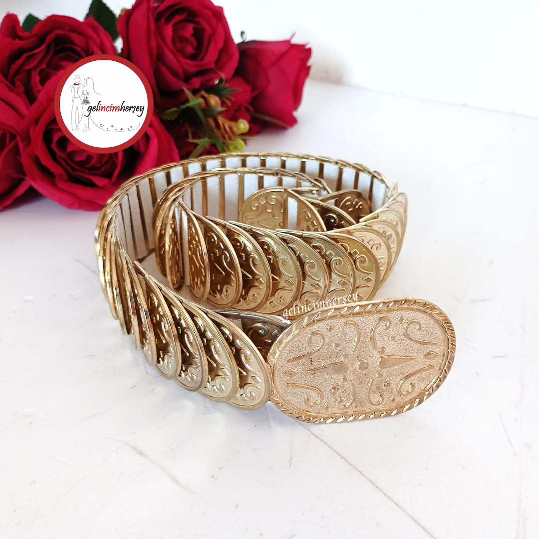 Gelincimherşey Kına Gecesi İçin Lastikli Metal Gelin Kaftan Bindallı Kemeri