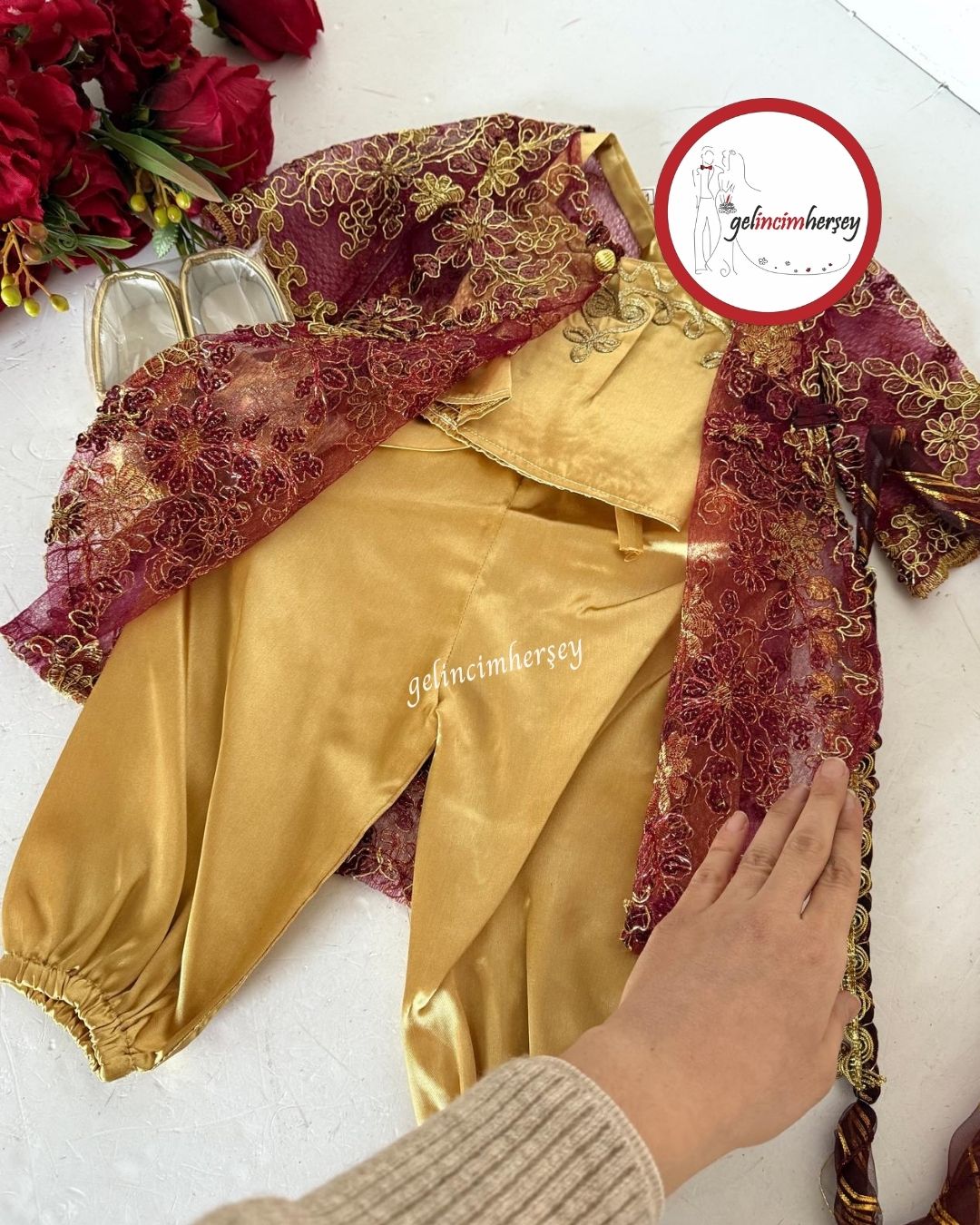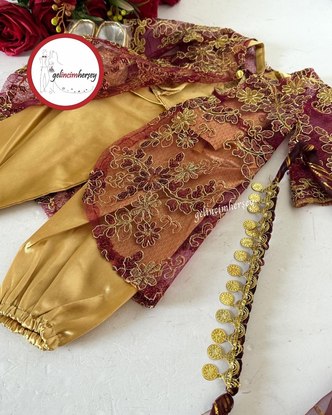 Gelincimherşey kız çocuk tel kırma bindallı kostüm seti, saten bustiyer ve şalvar ile tamamlanan 3 parçalı şık ve geleneksel bir organizasyon kostümüdür.