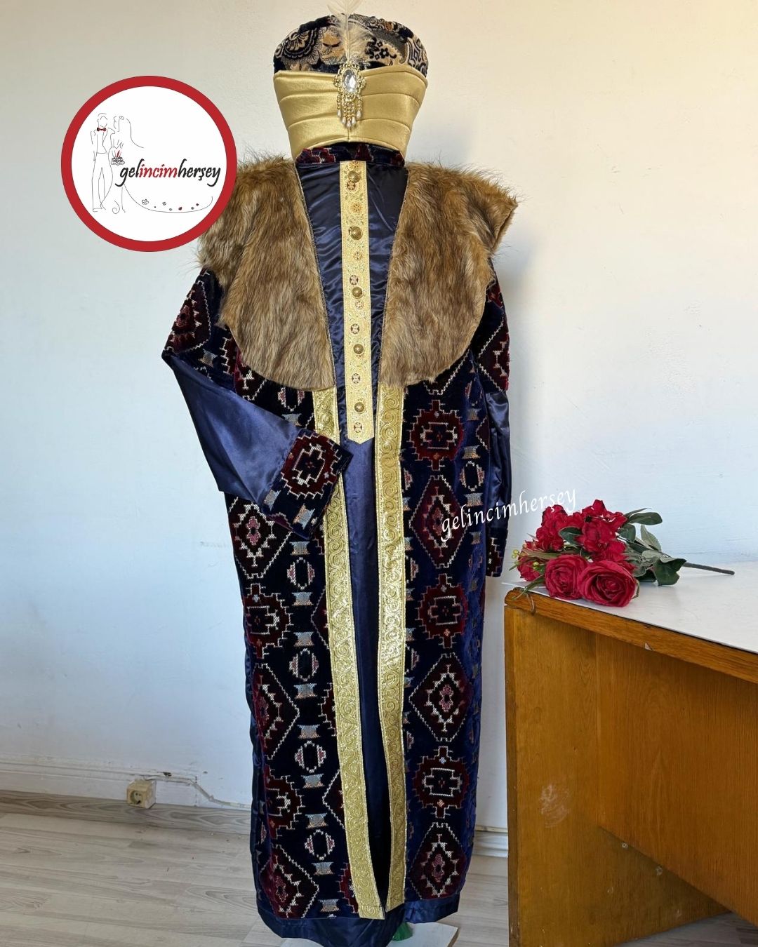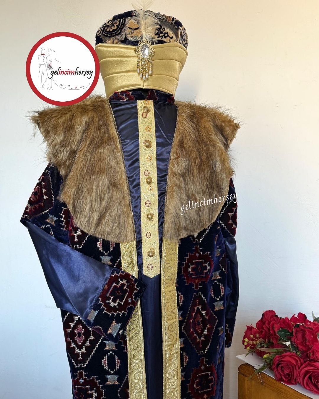 Gelincimherşey tarafından özenle hazırlanan Koyu Lacivert Profesyonel Kalite Osmanlı Dönemi Padişah Kostümü, hem geleneksel hem modern etkinlikler için tasarlanmış yüksek kaliteli bir kostümdür.