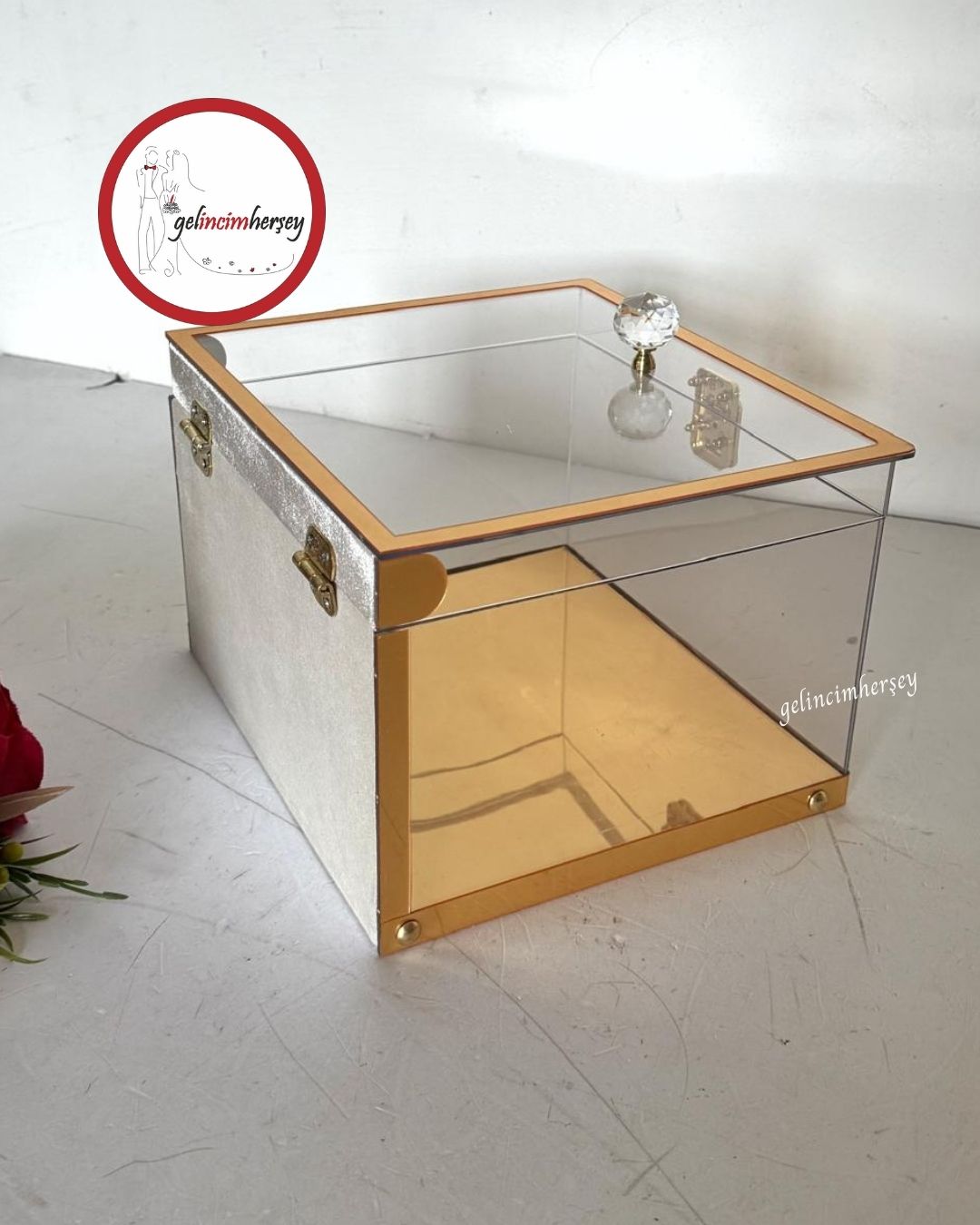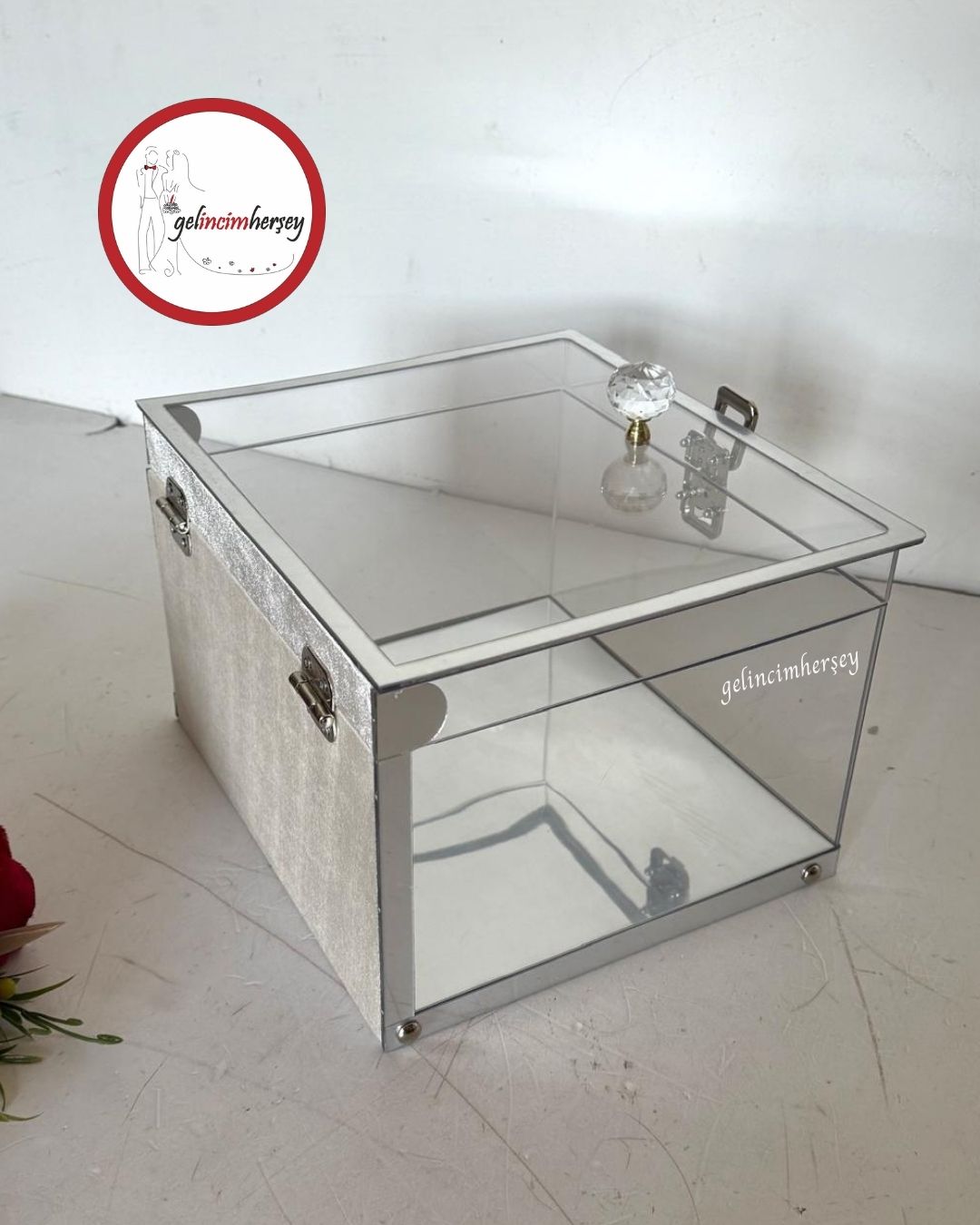 Gelincimherşey Kristal Kulplu Şeffaf Dekoratif Çeyiz Sunum Kutusu