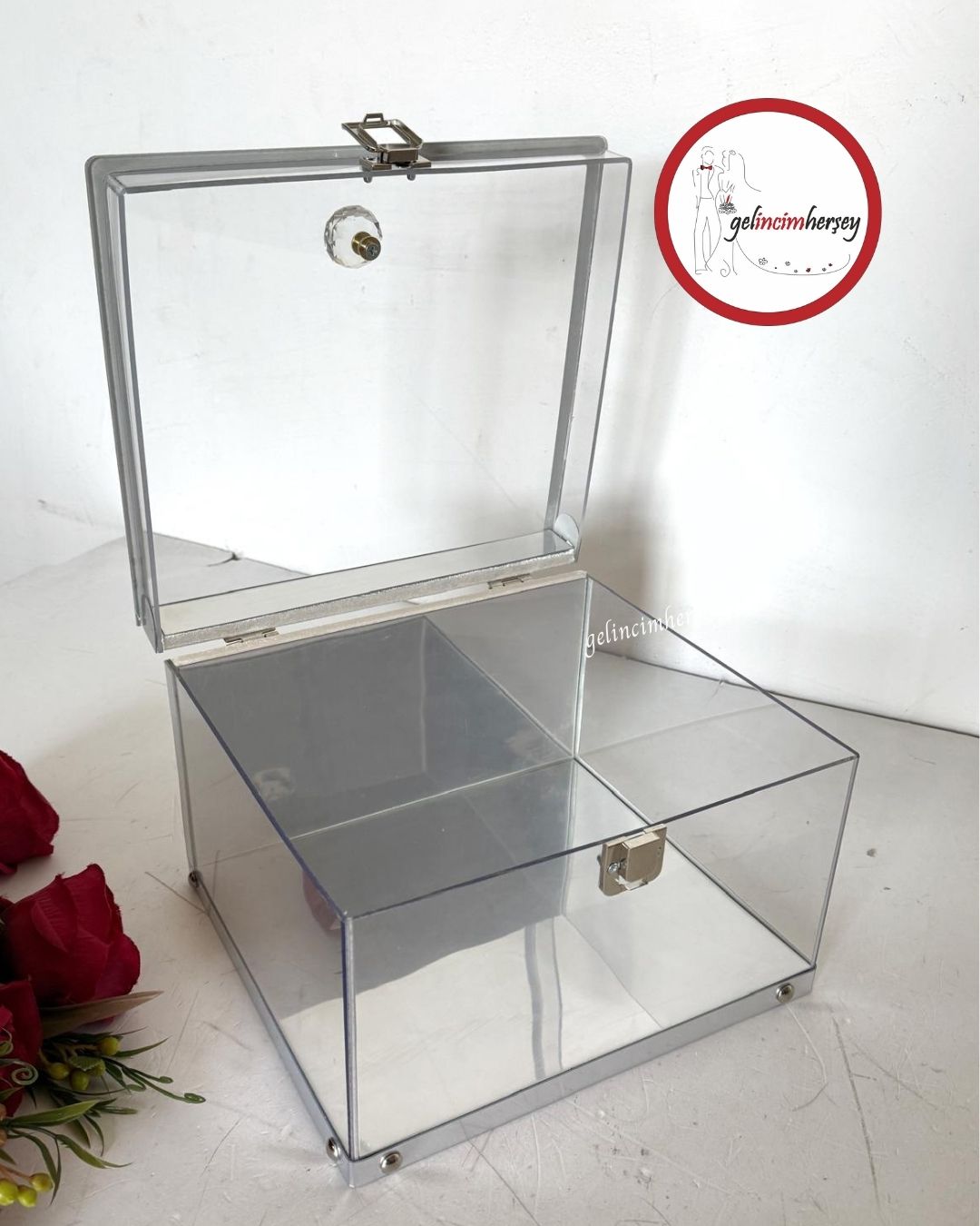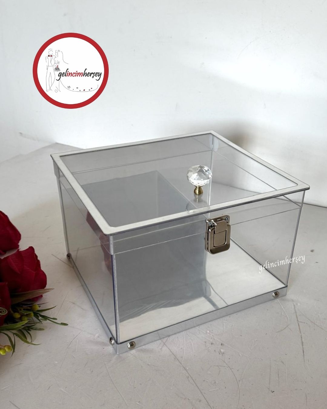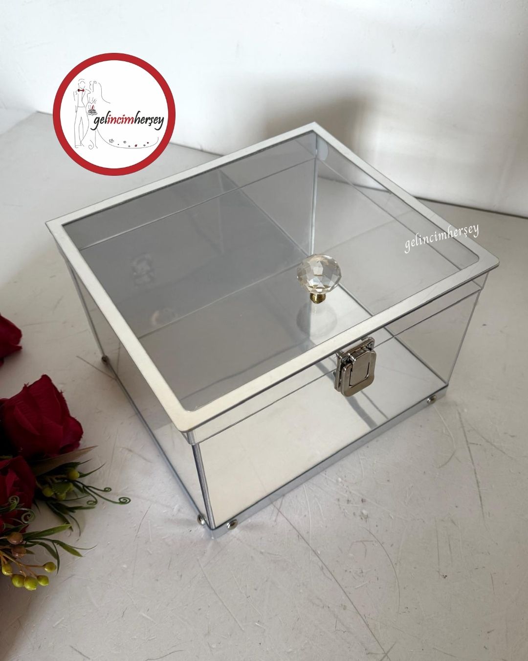 Gelincimherşey Kristal Kulplu Şeffaf Dekoratif Çeyiz Sunum Kutusu
