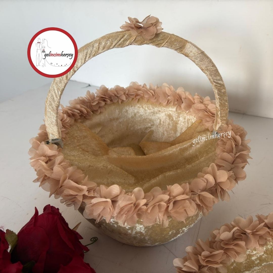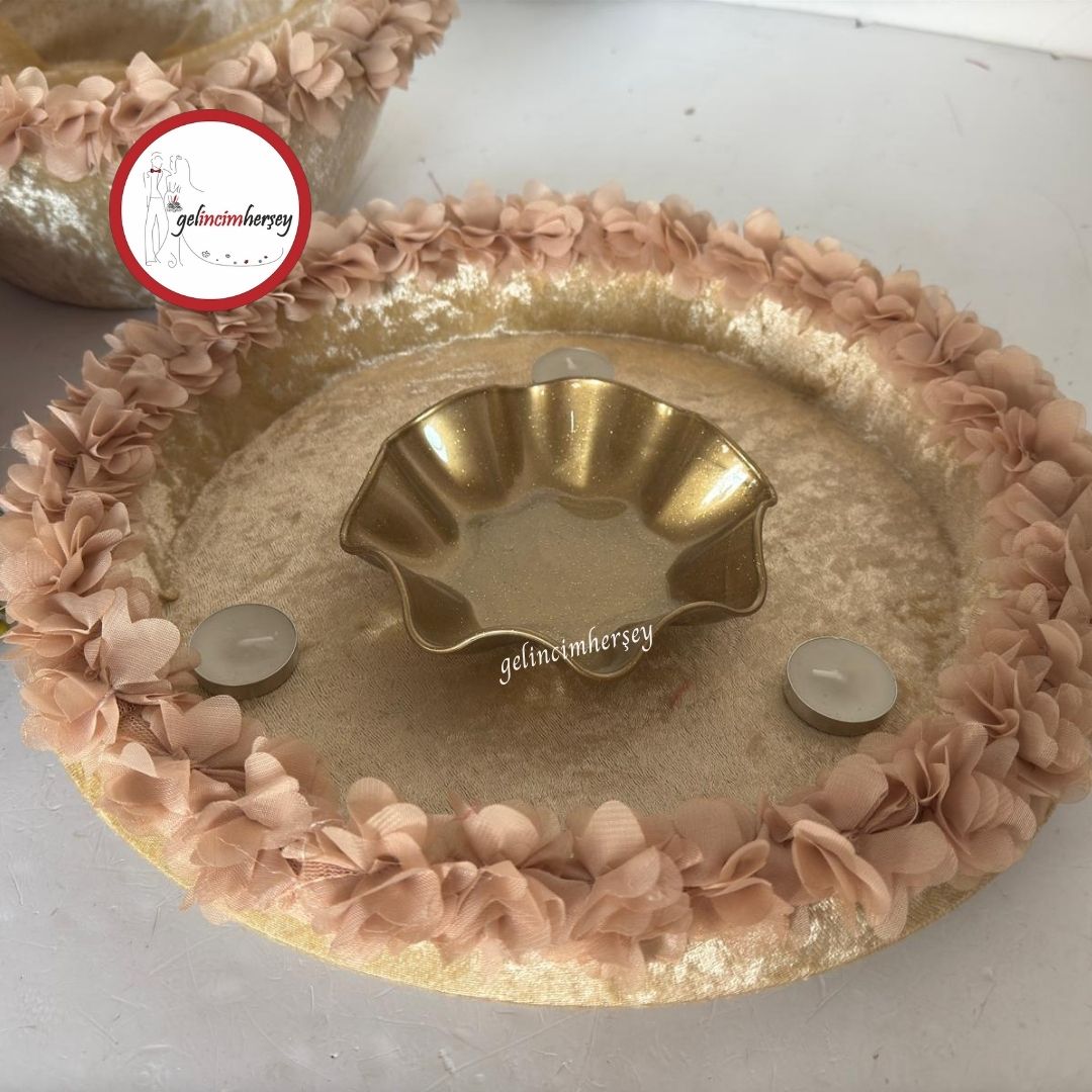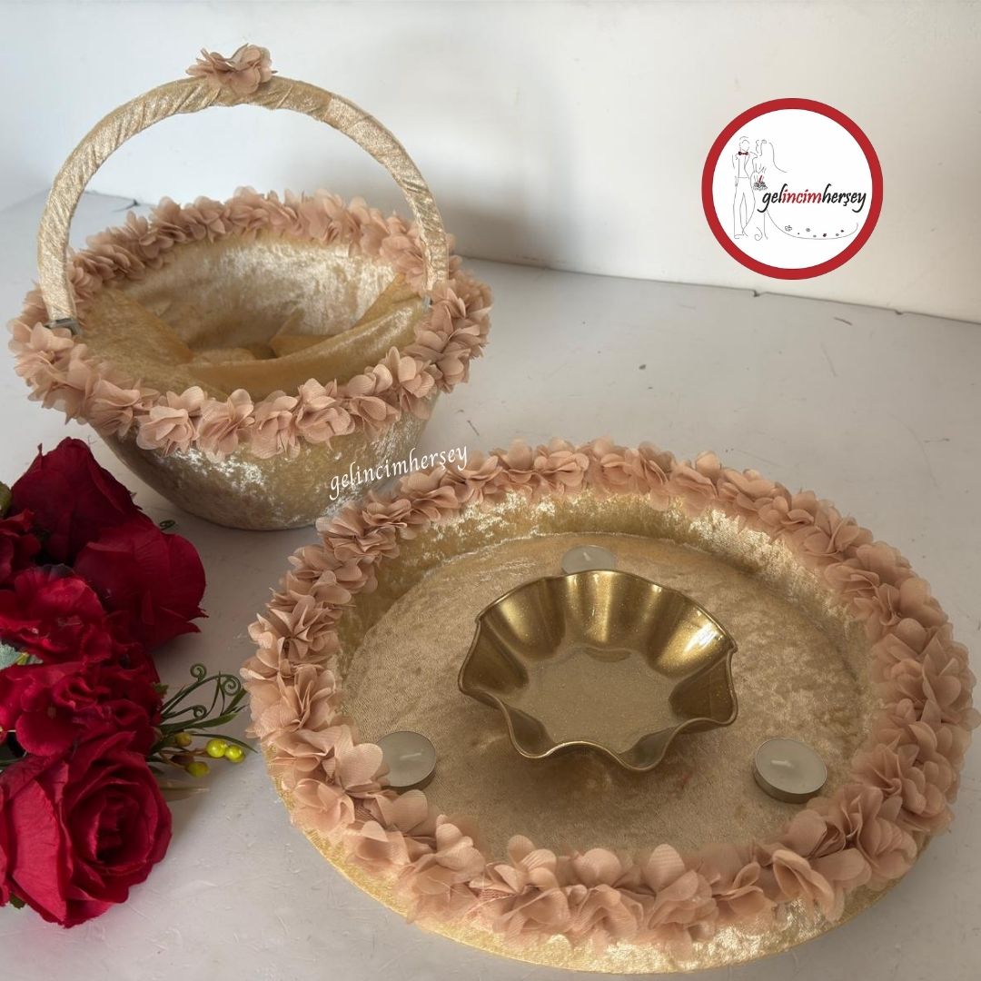 Gelincimherşey Kumaş Çiçekli Kadife Kına Sepeti ve Kına Tepsisi