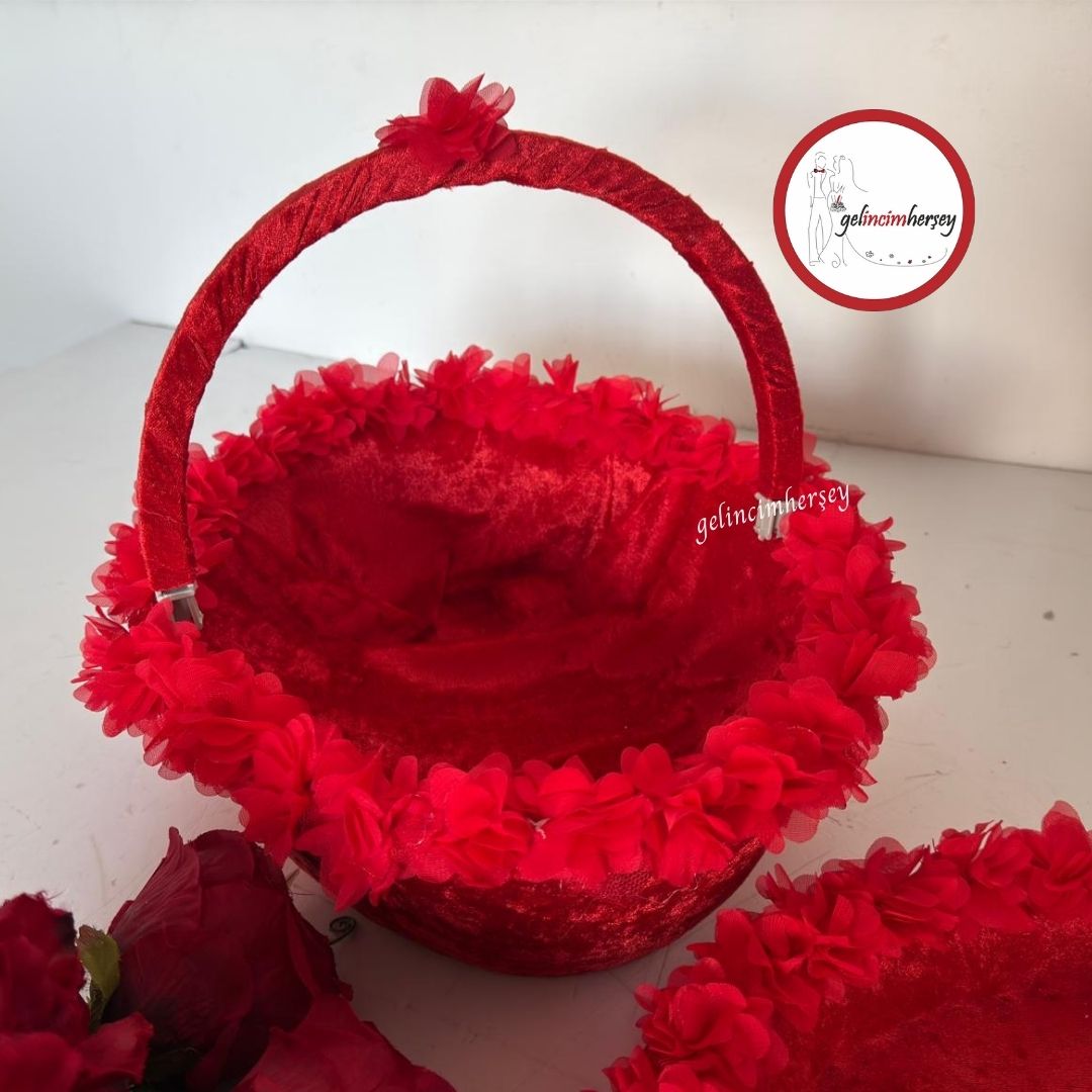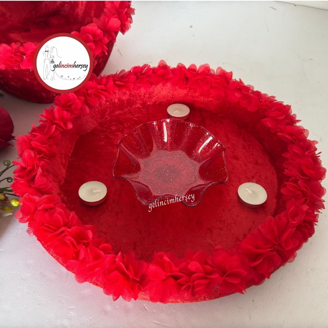 Gelincimherşey Kumaş Çiçekli Kadife Kına Sepeti ve Kına Tepsisi