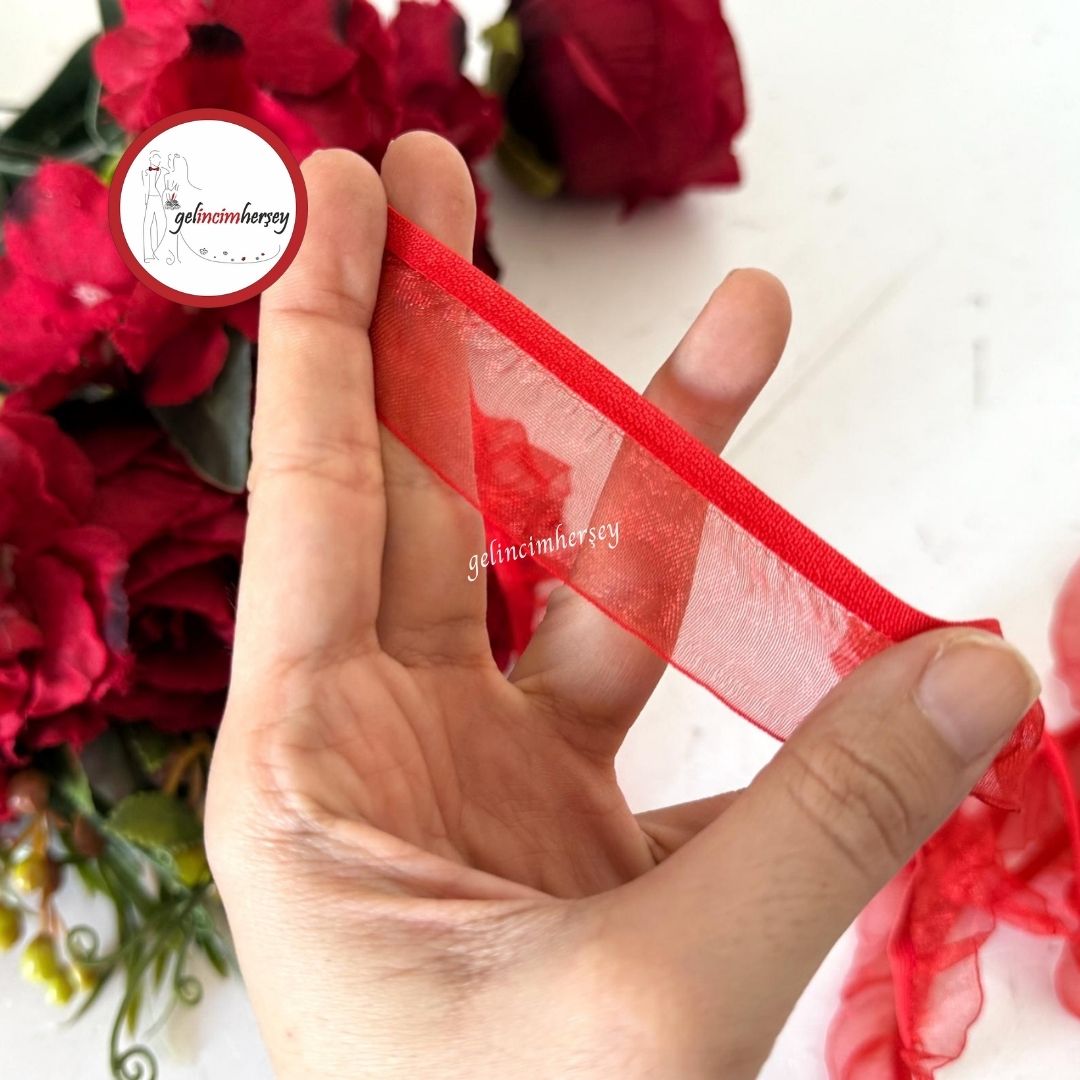 El işi, süsleme ve tekstil projelerinize romantik ve zarif bir dokunuş katacak lastikli organze fırfır şerit, kırmızı rengi ve pratik kullanımıyla öne çıkıyor. Hem dikim hem de dekoratif amaçlı kullanıma uygun olan bu şerit, davetiye, kıyafet, aksesuar ve dekor süslemelerinde ideal bir tamamlayıcıdır.