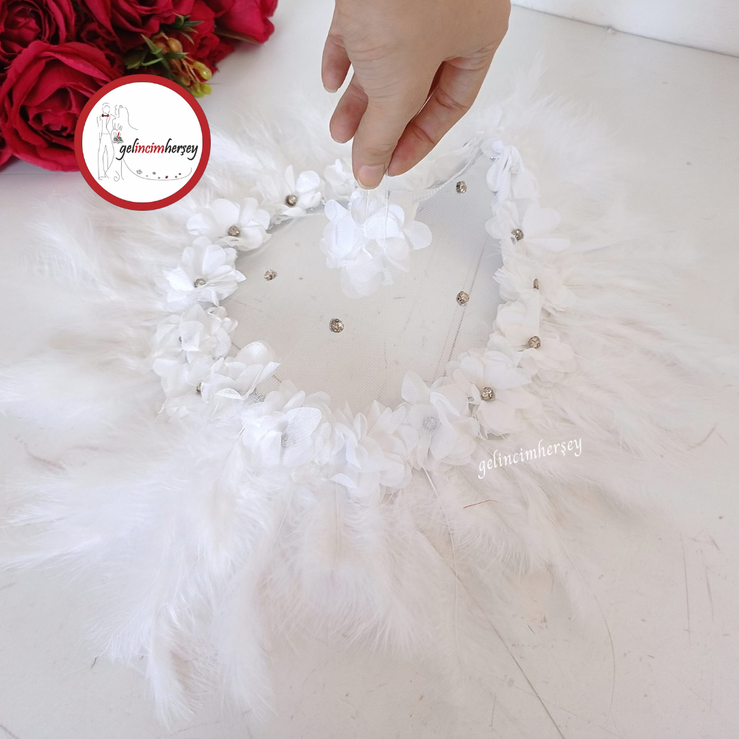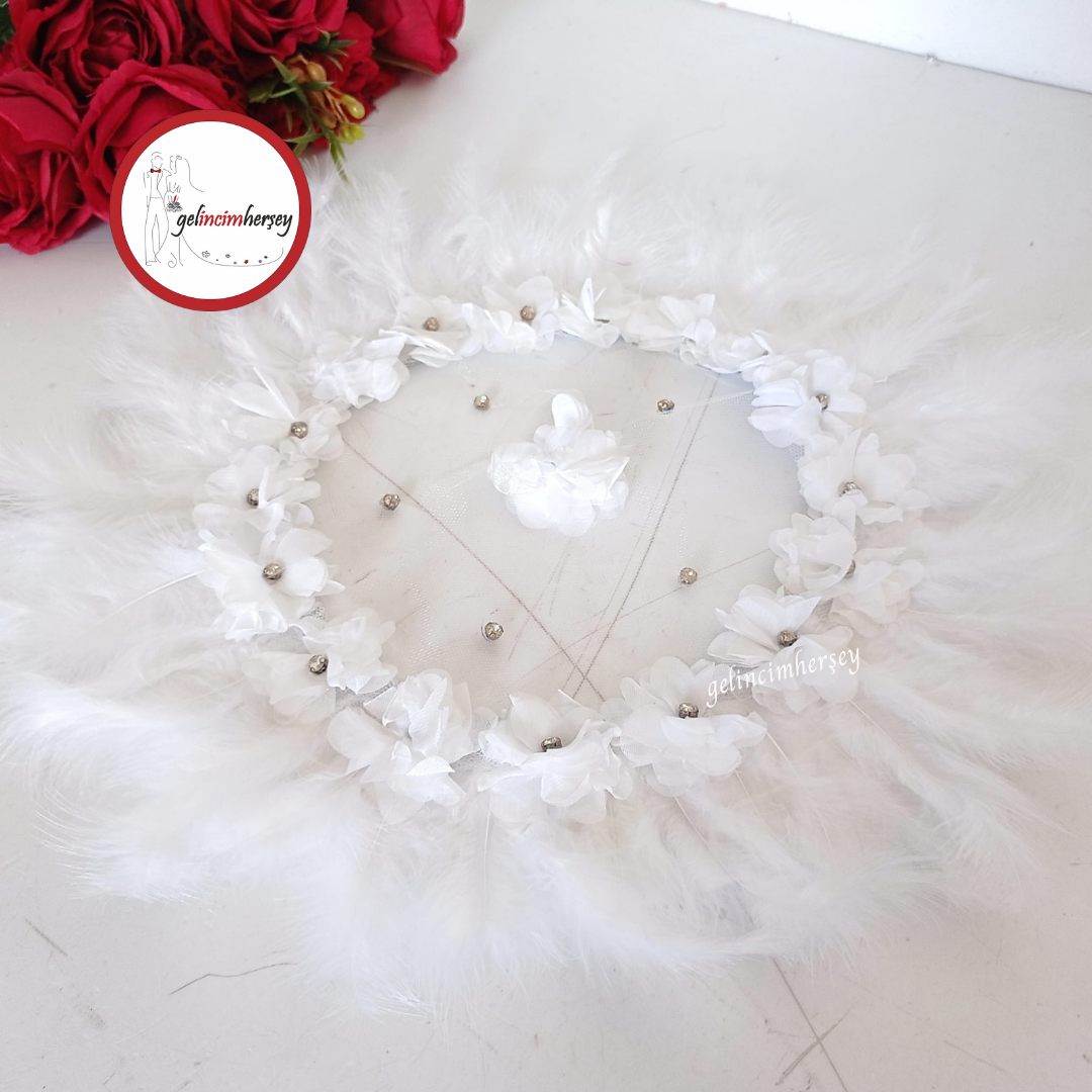 Gelin Mendili ,Tüylü Dantelli Gelin Mendili, Özel Tasarım Gelin Halay Mendili