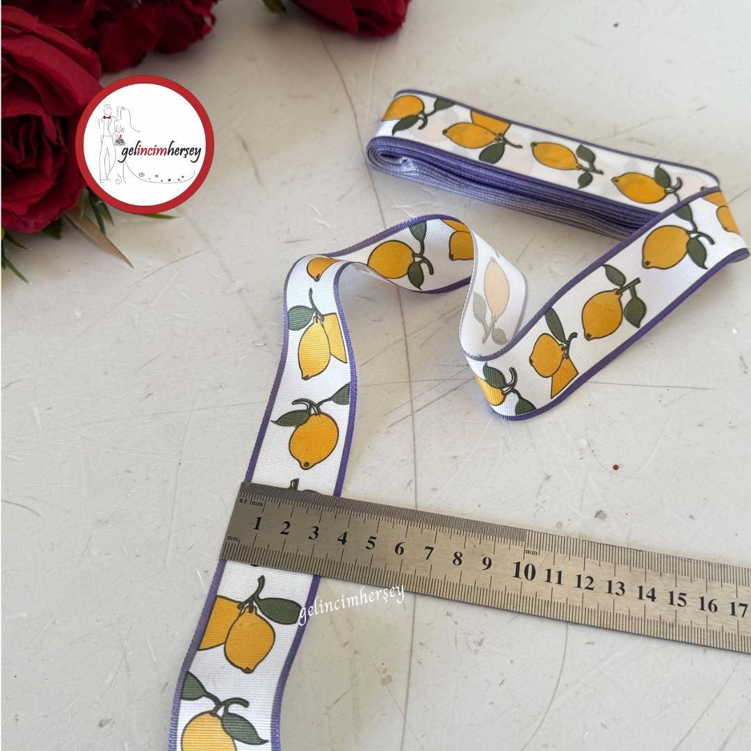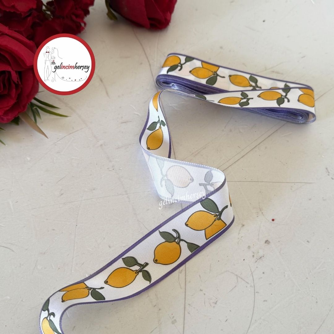 Gelincimherşey Limon Desenli Polyester Kurdele 3.5 cm 9 mt – Canlı Deseniyle Yaz Enerjisini Yakalayın