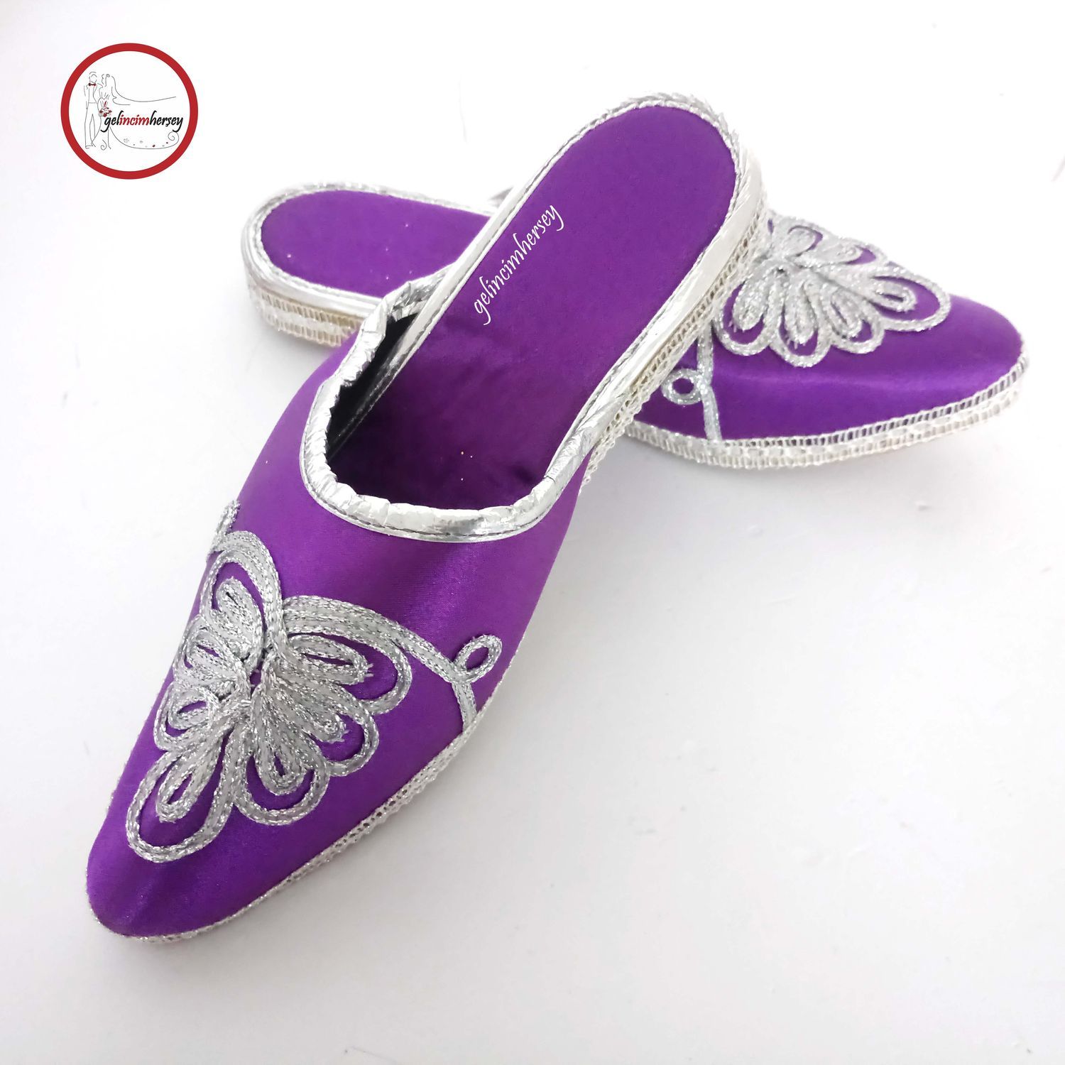 Bindallı, kaftan ve yöresel kostümlerle tam uyumlu! Geleneksel motiflerle harmanlanmış mor renkli 35 numara çarık modeli, hem zarif hem konforlu.