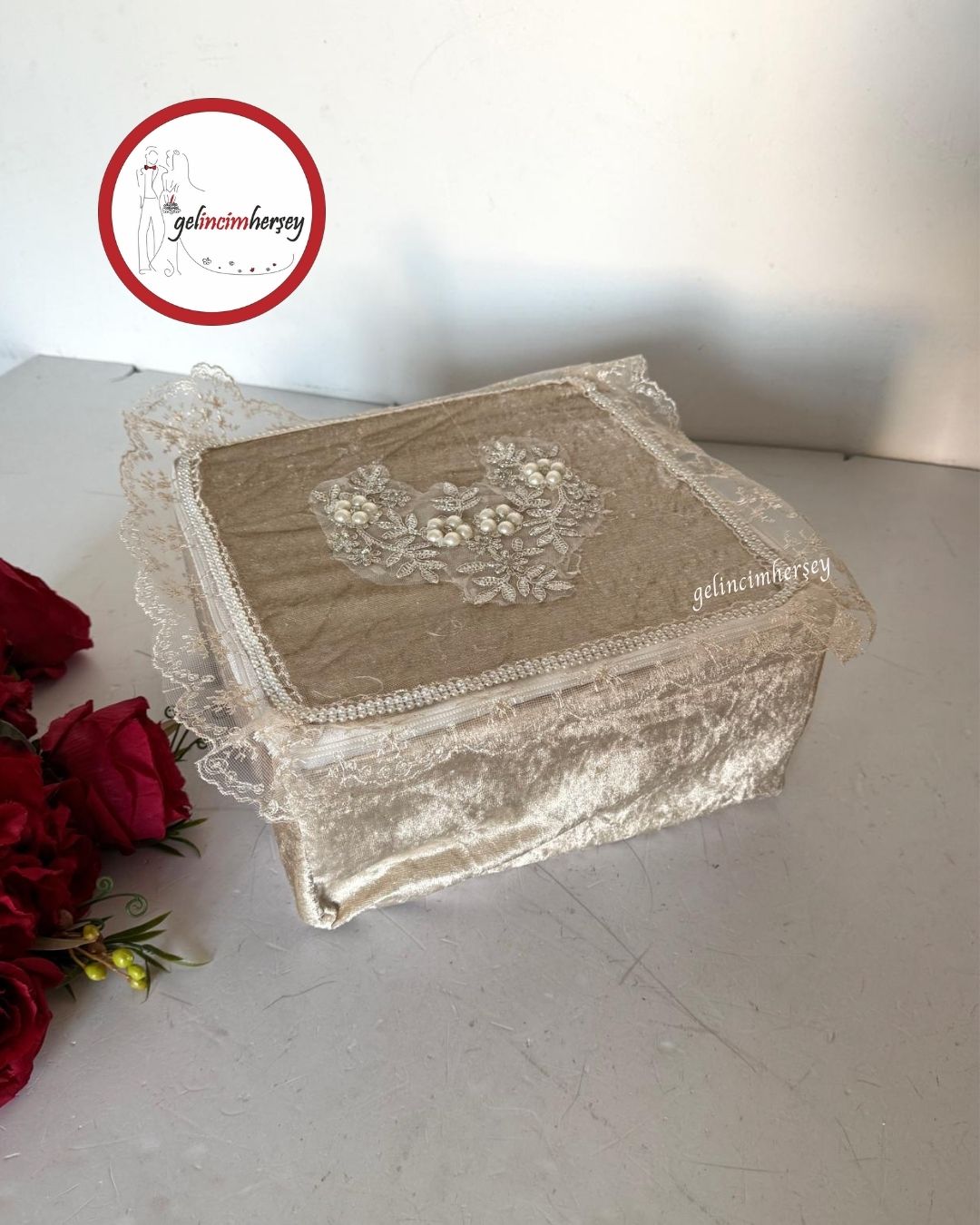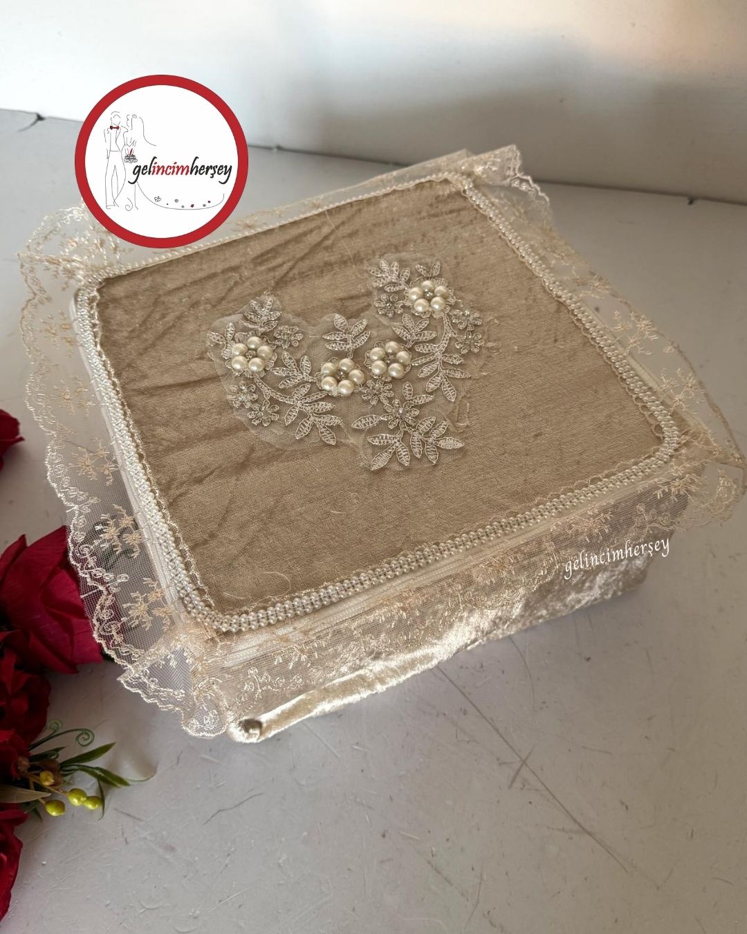Gelincimherşey Nişan Çeyiz Bohçası İçin Dantelli Kadife Hurç Küçük Boy