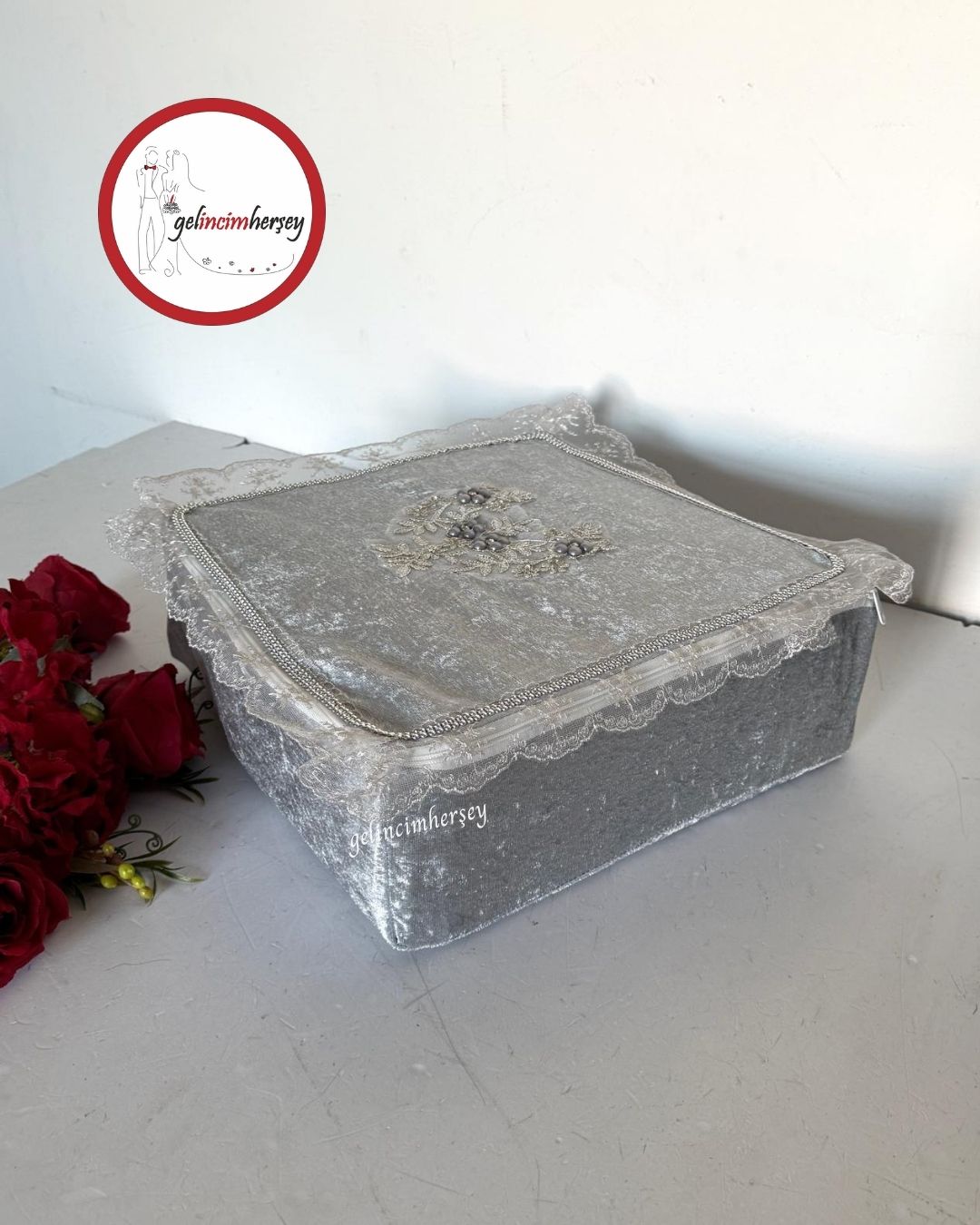 Gelincimherşey Nişan Çeyiz Bohçası İçin Dantelli Kadife Hurç Orta Boy