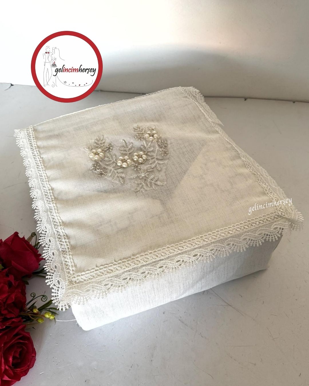 Gelincimherşey Nişan Çeyiz Bohçası İçin Dantelli Keten Hurç
